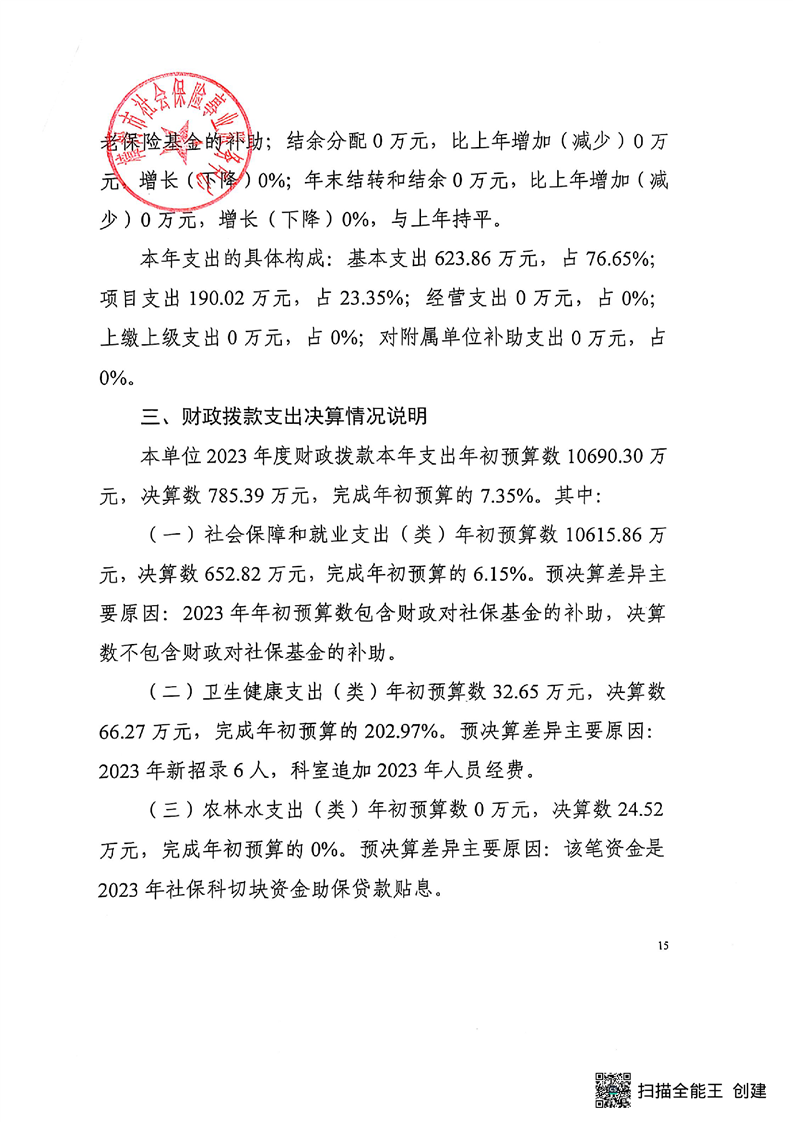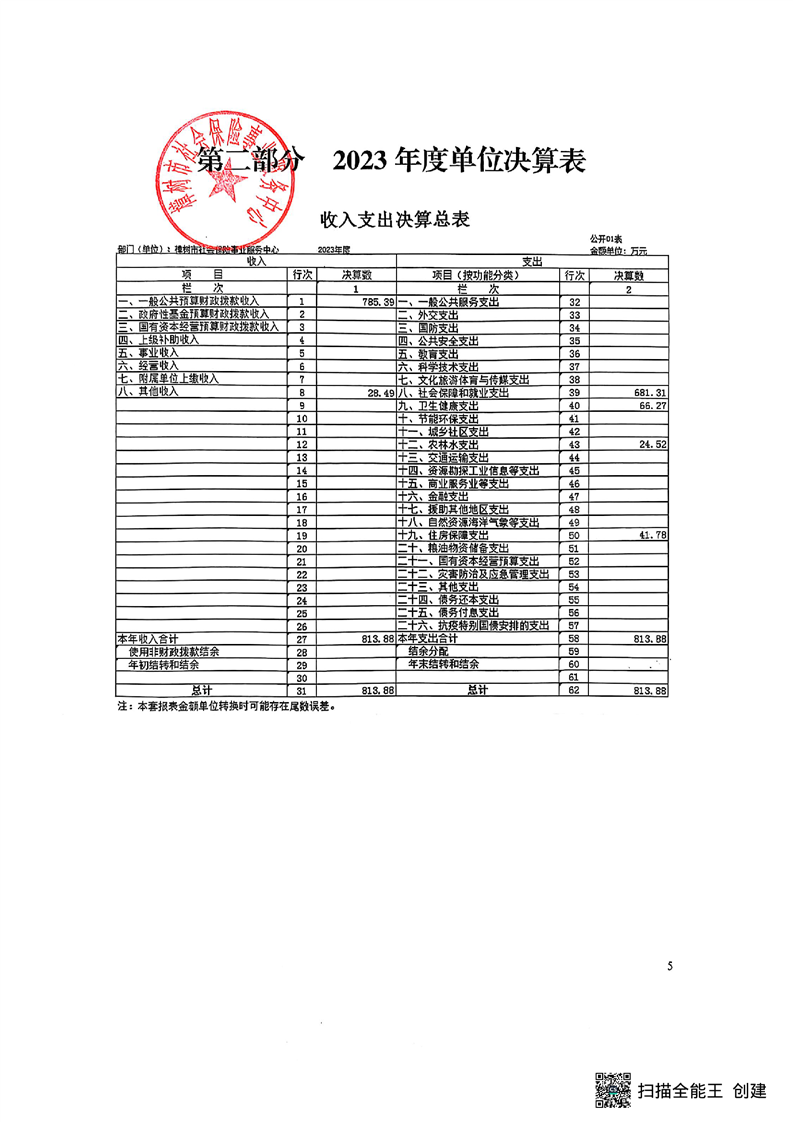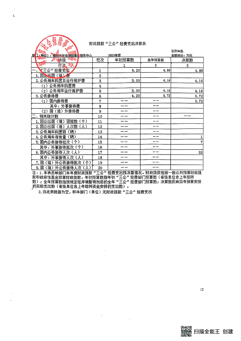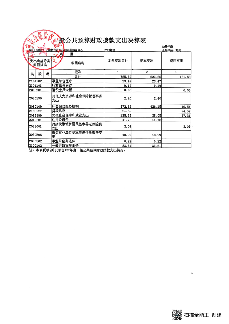 一體化導出樟樹市社會保險事業服務中心2023年決算公開表