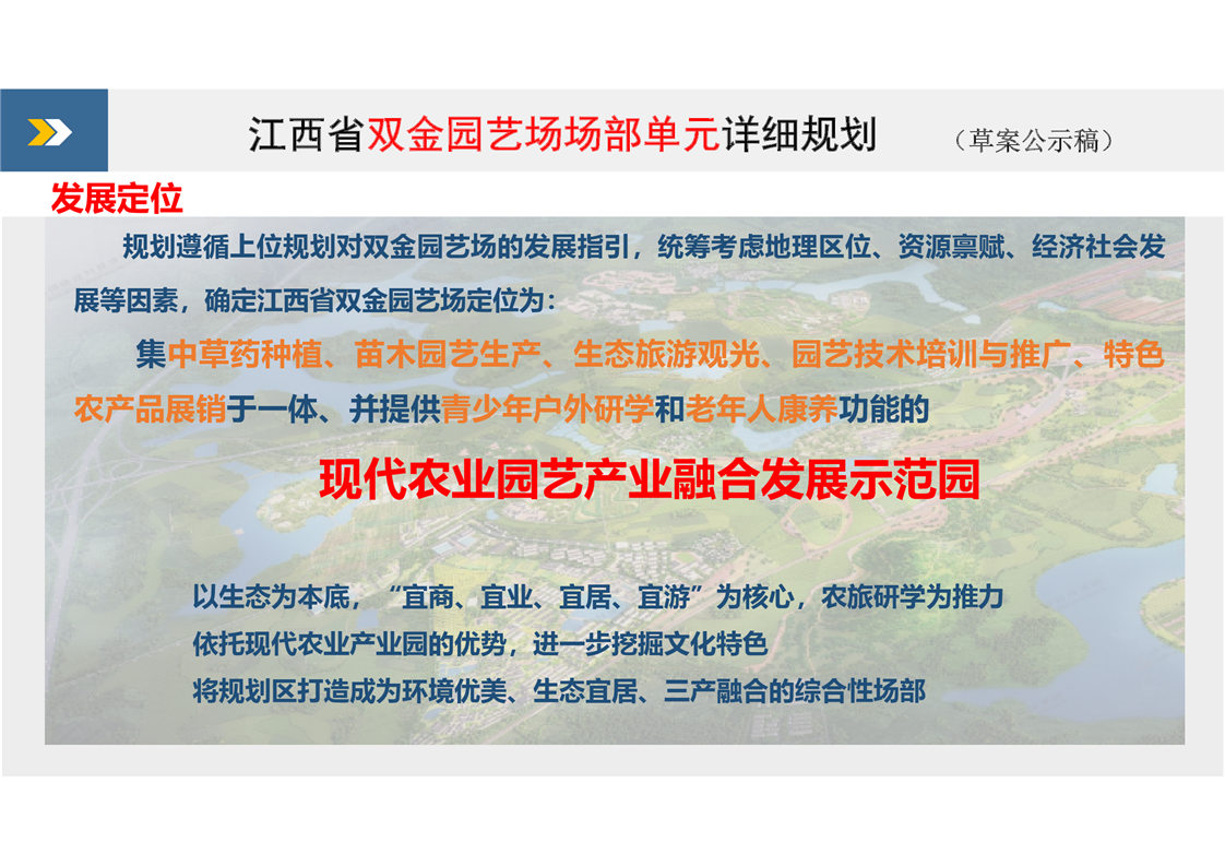 《江西省雙金園藝場場部單元詳細規劃》草案公示