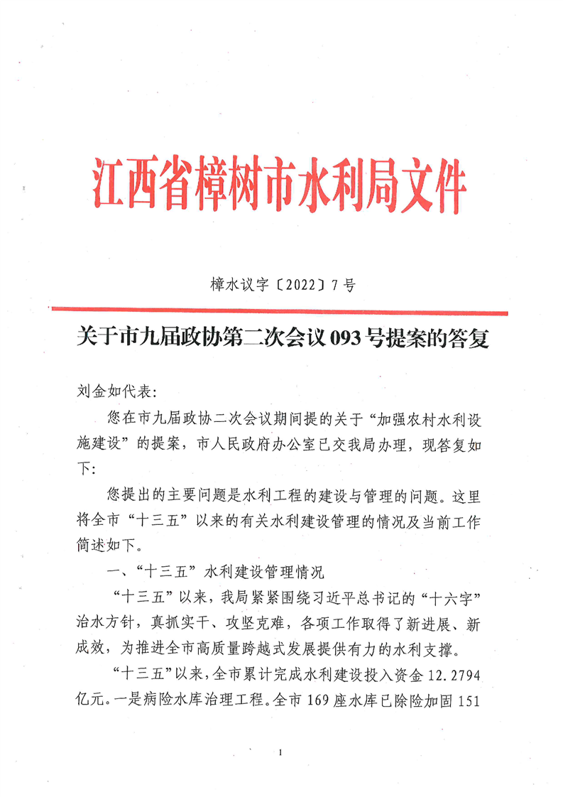 關(guān)于市九屆政協(xié)第二次會(huì)議093號(hào)提案的答復(fù)