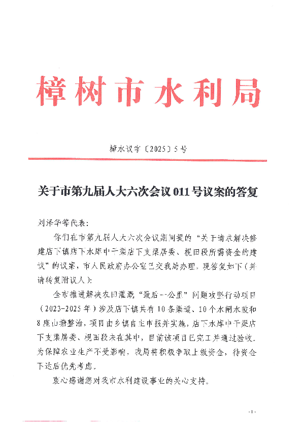 您當前所在位置: 首頁>政務公開>政府部門信息公開>部門信息公開目錄>市水利局>法定主動公開內容>建議提案辦理>辦理結果