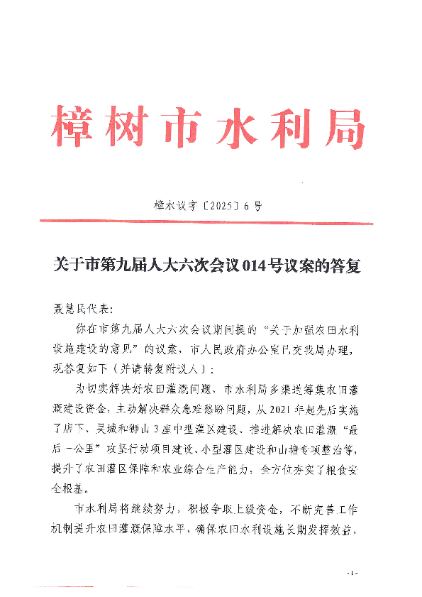 您當前所在位置: 首頁>政務公開>政府部門信息公開>部門信息公開目錄>市水利局>法定主動公開內容>建議提案辦理>辦理結果
