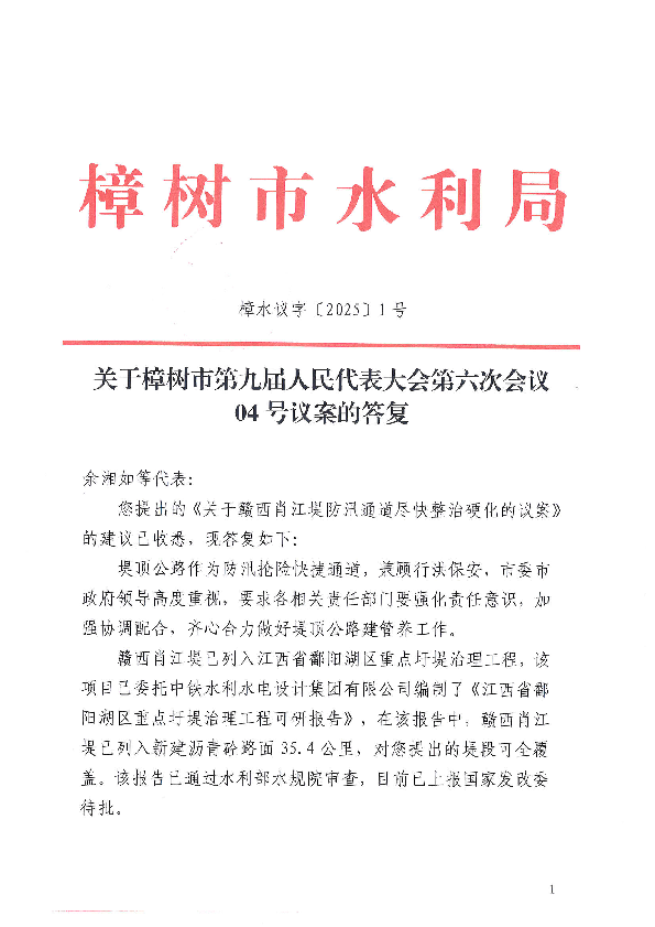 關于樟樹市第九屆人民代表大會第六次會議04號議案的答復