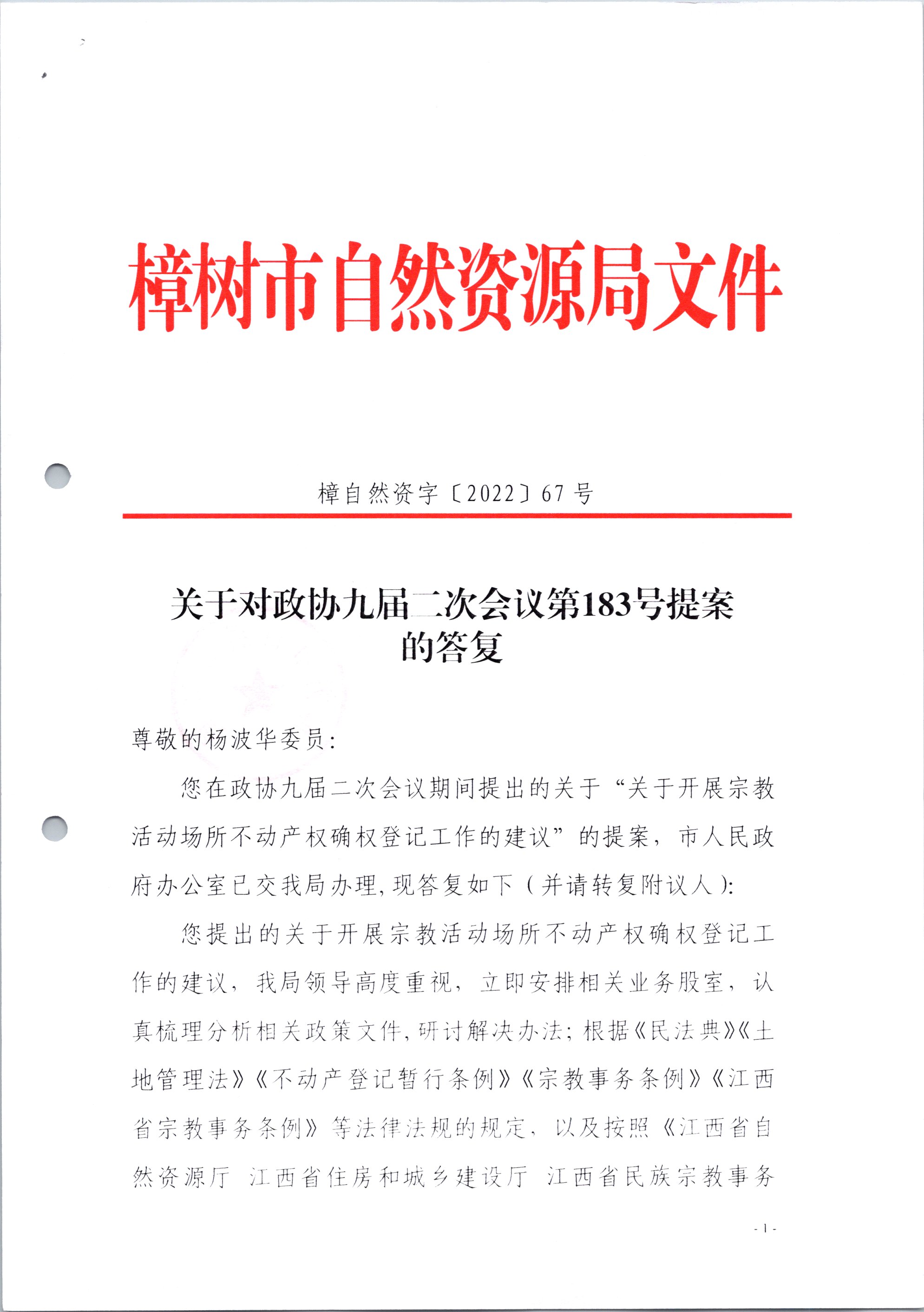 關于對政協(xié)九屆二次會議第183號提案的答復