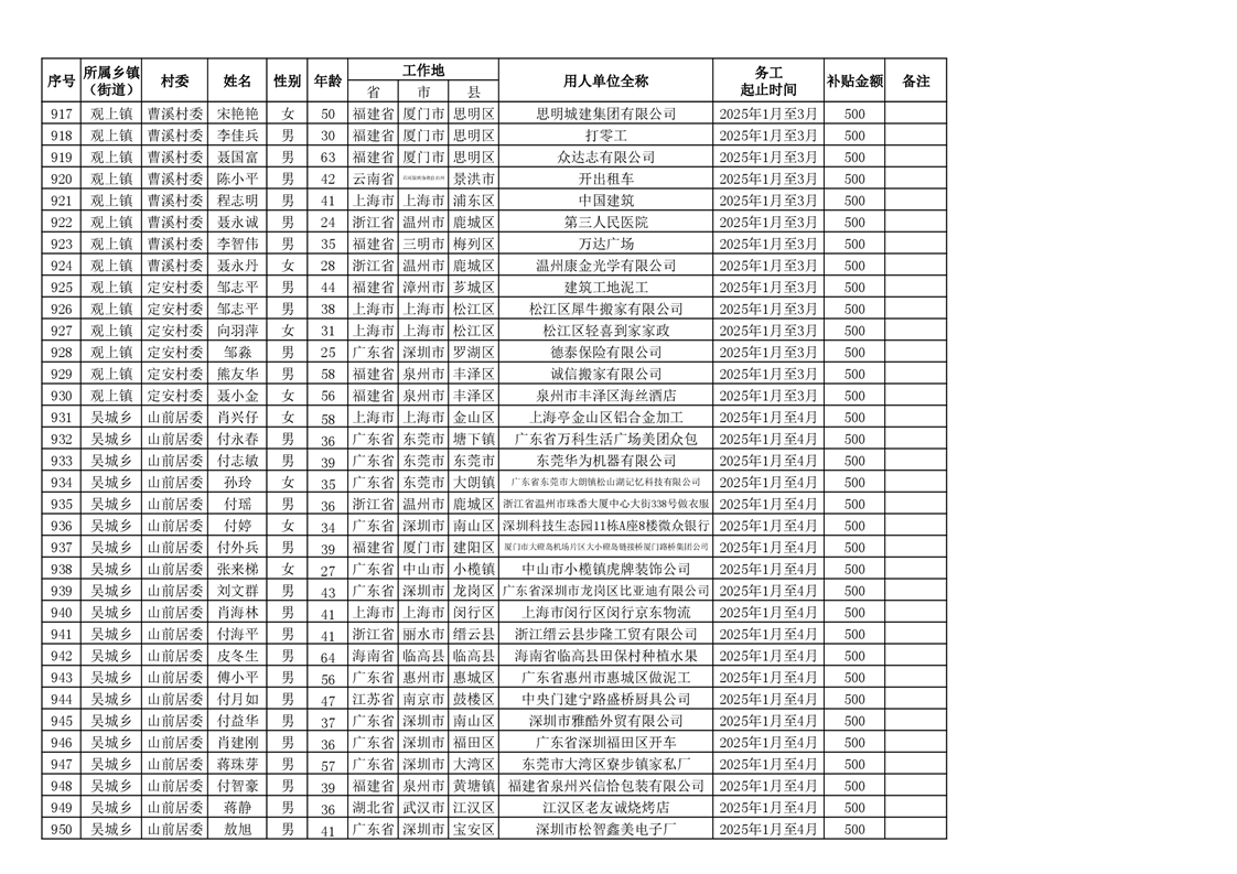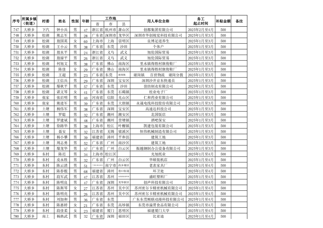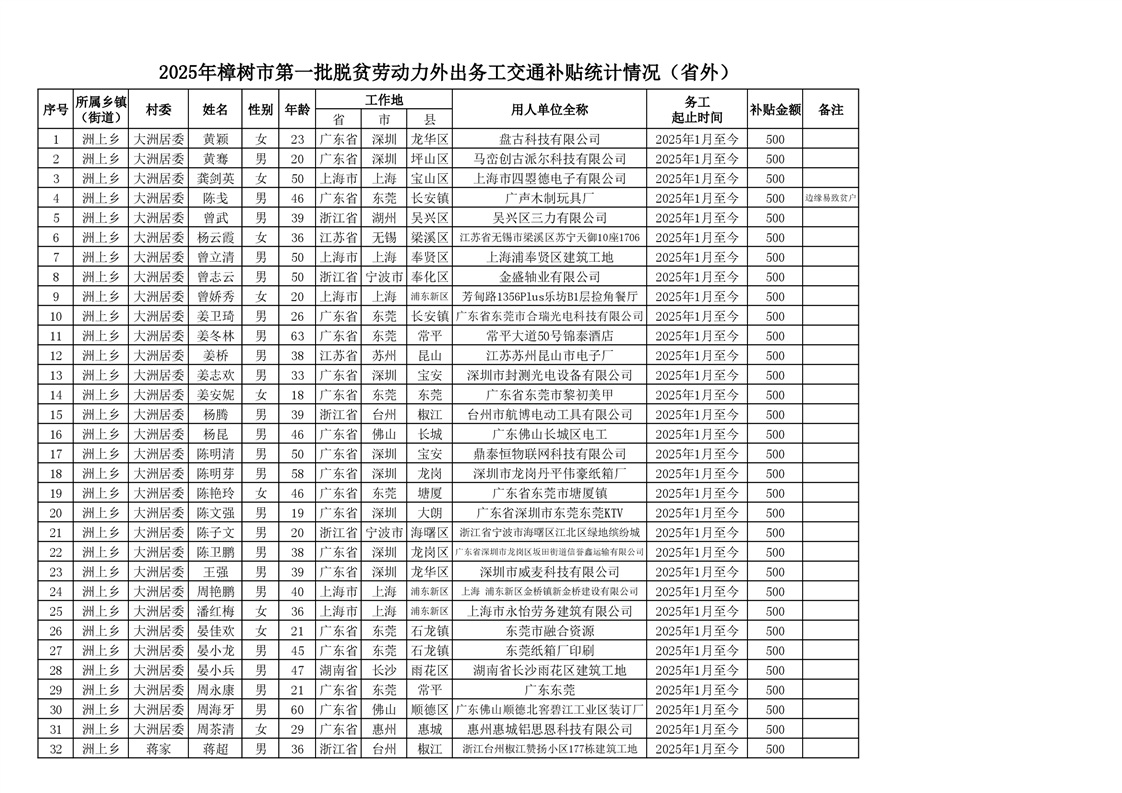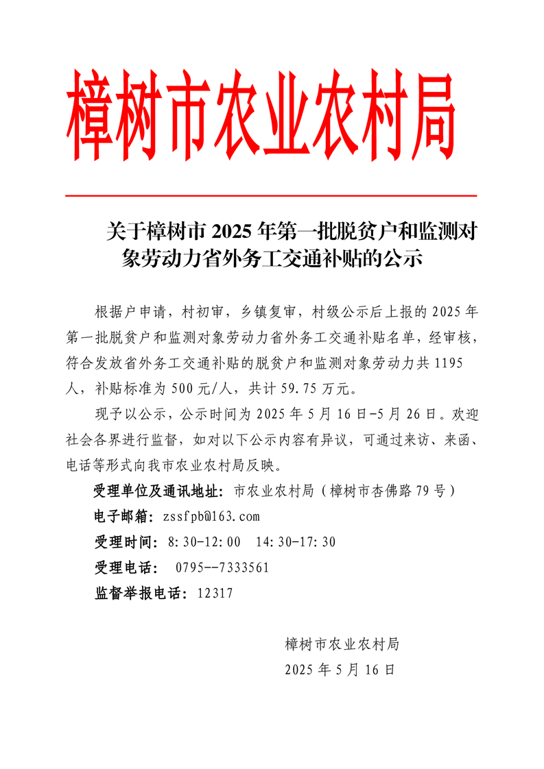 關于樟樹市2025年第一批脫貧戶和監測對象勞動力省外務工交通補貼的公示