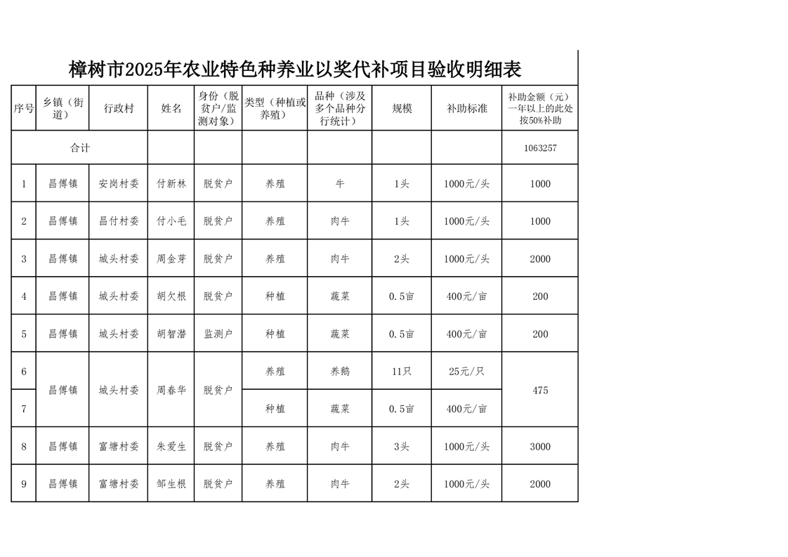 關于樟樹市2025年農業特色種養業以獎代補的公示