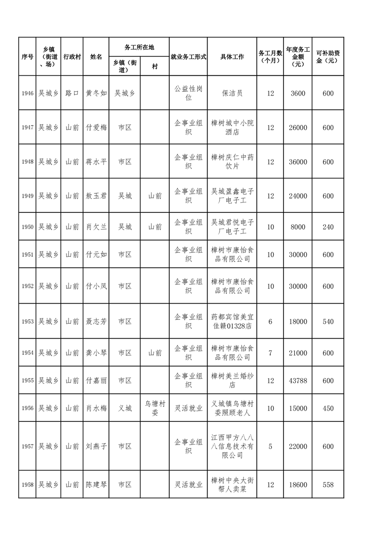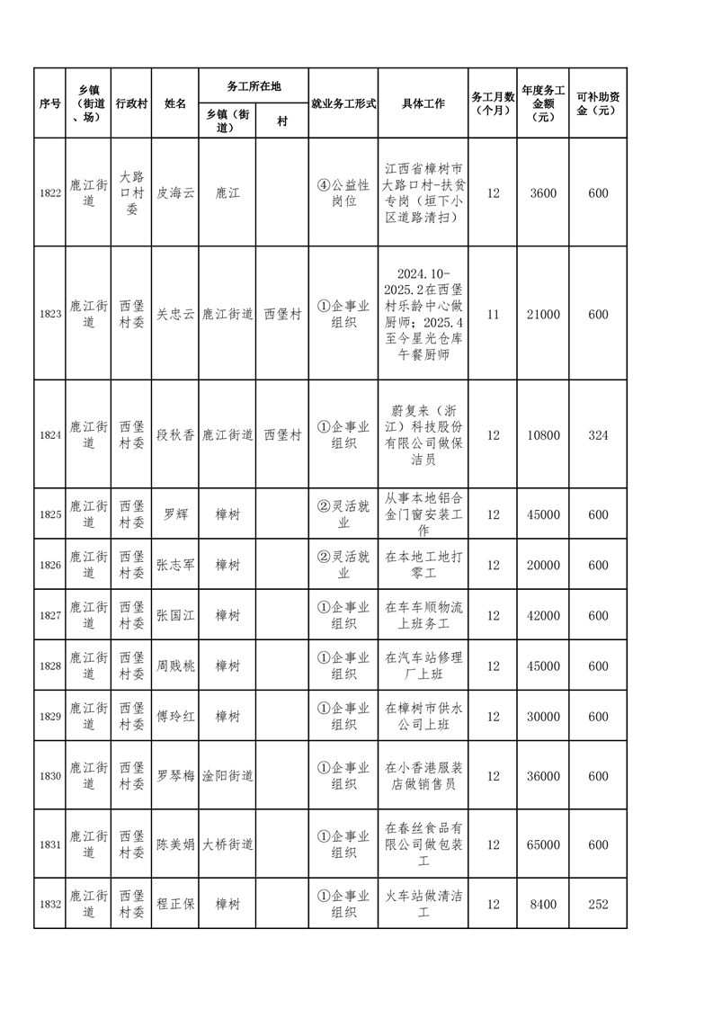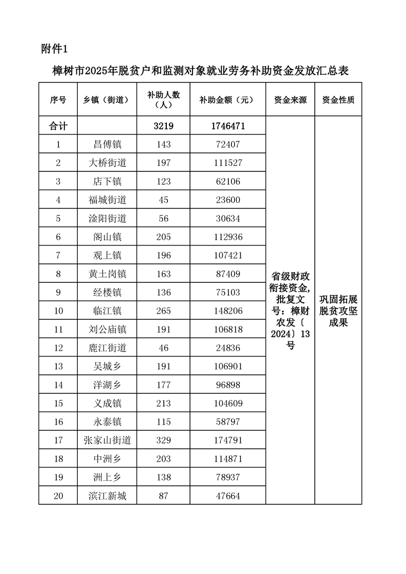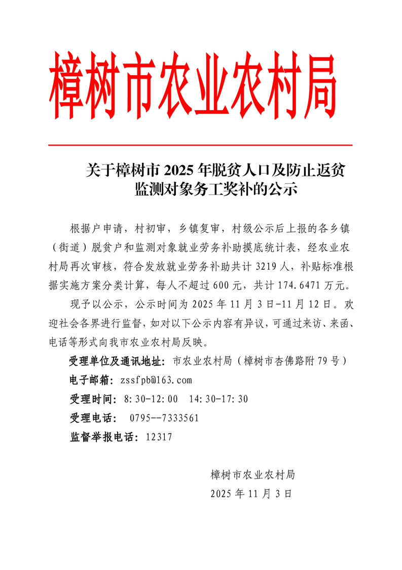 關于樟樹市2025年脫貧人口及防止返貧監測對象務工獎補的公示