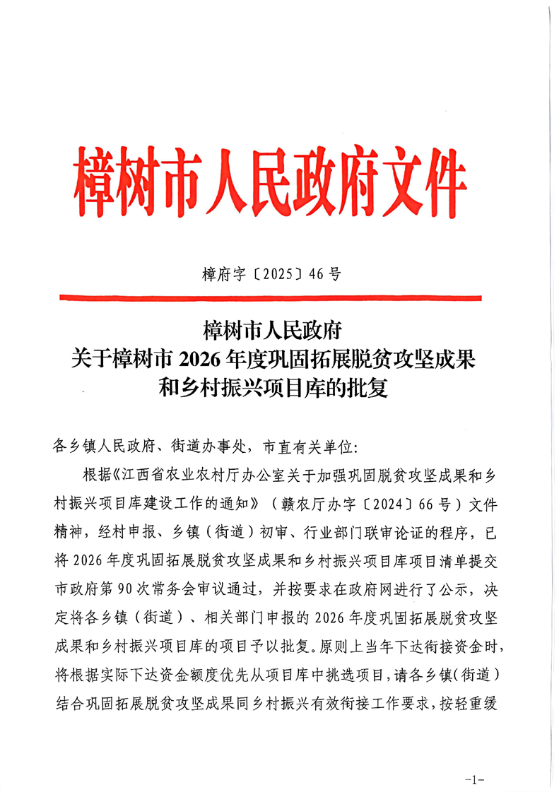 關于樟樹市2026年度鞏固脫貧攻堅成果和鄉村振興項目庫項目的公告