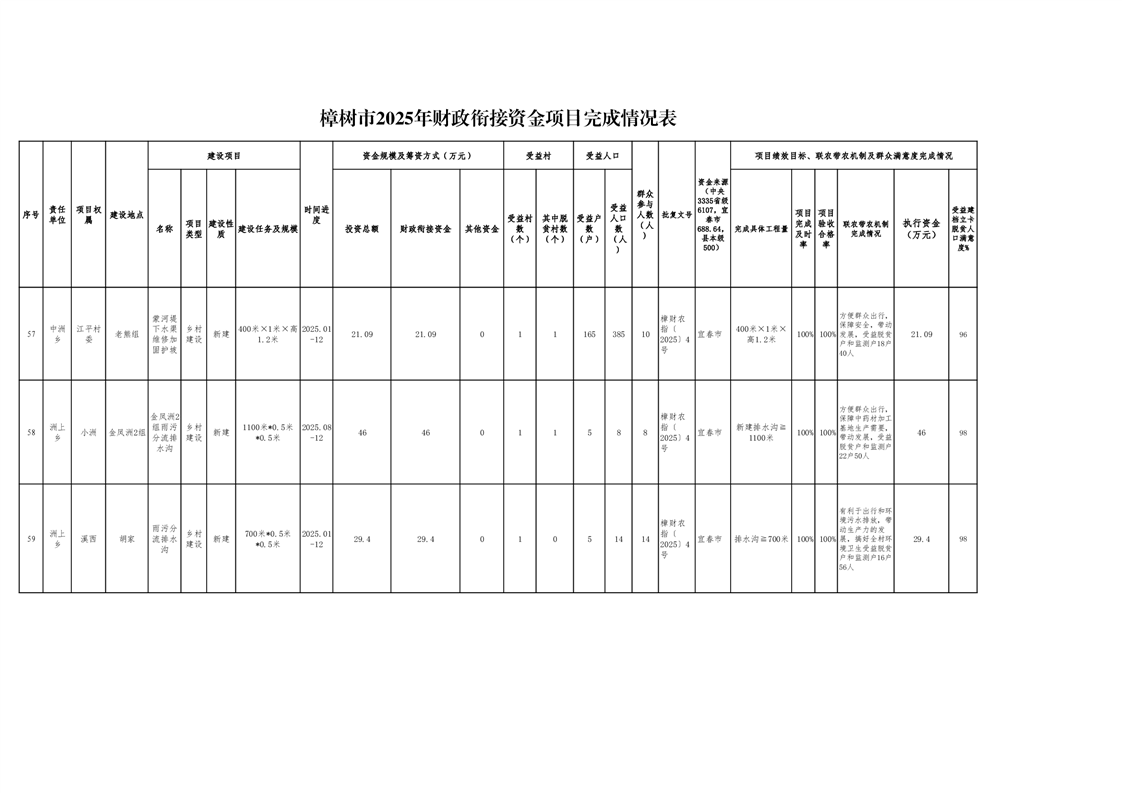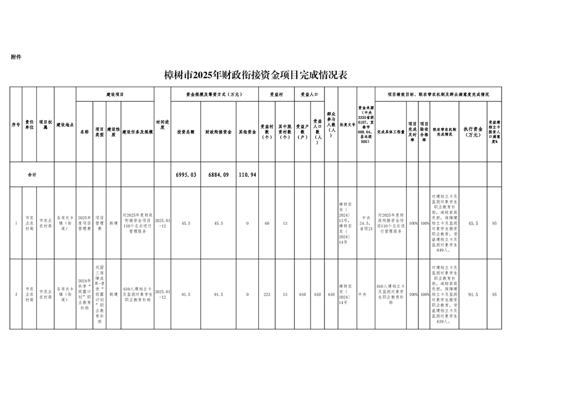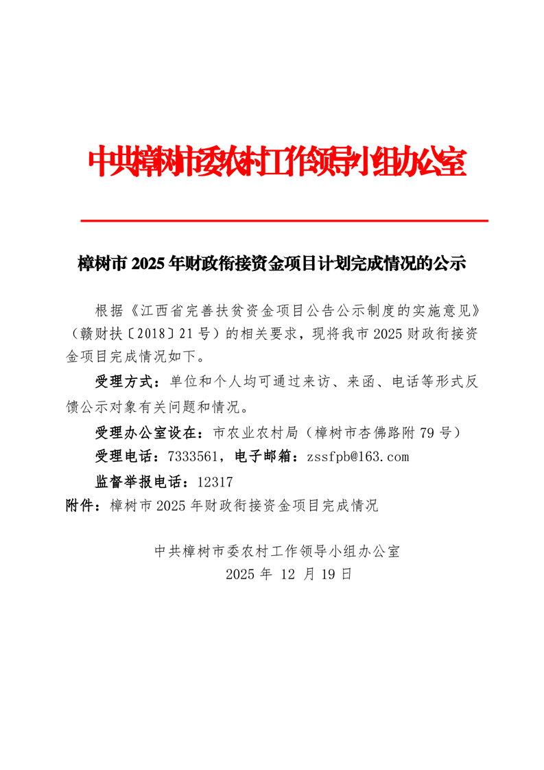 樟樹市2025年財政銜接資金項目計劃完成情況的公示