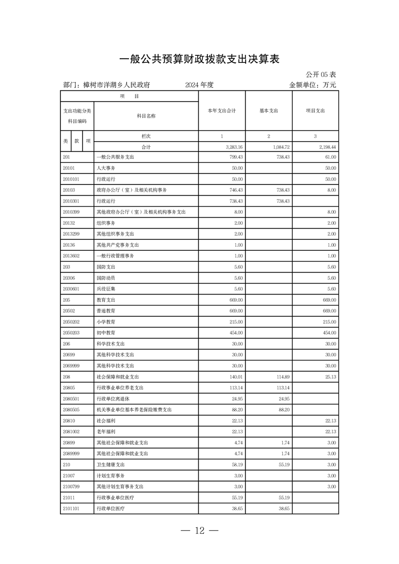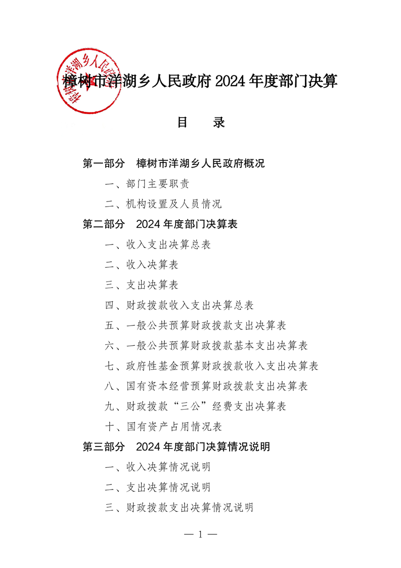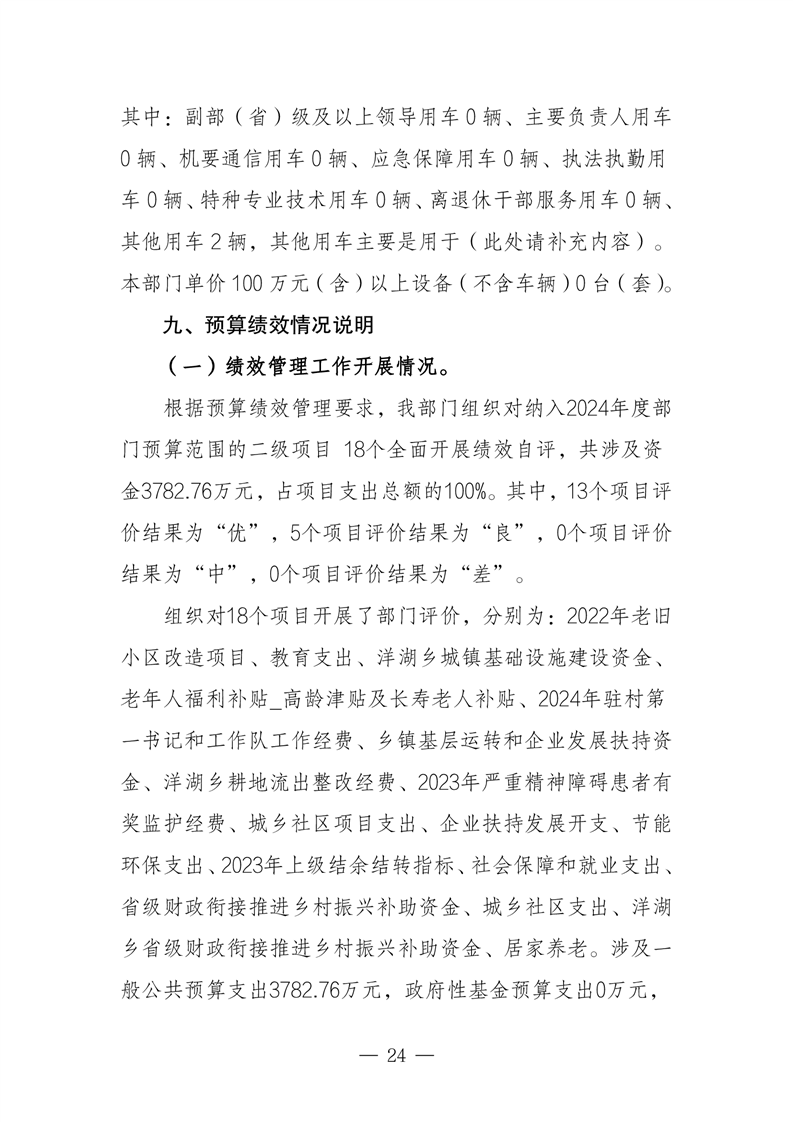樟樹市洋湖鄉人民政府2024年度部門決算