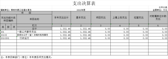 本年支出的具體構成為:基本支出1332.46萬元,占100%;項目支出0萬元,占0%;經營支出0萬元,占0%;其他支出(對附屬單位補助支出、上繳上級支出)0萬元,占0%。
