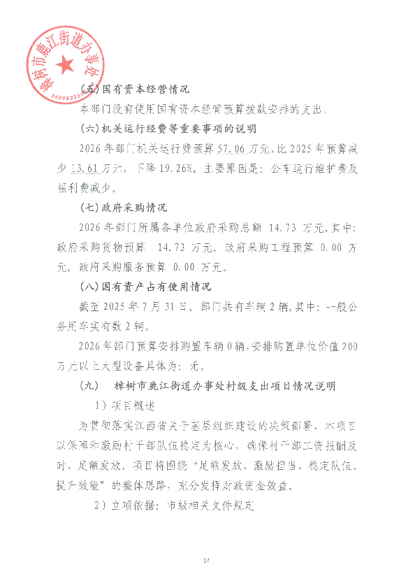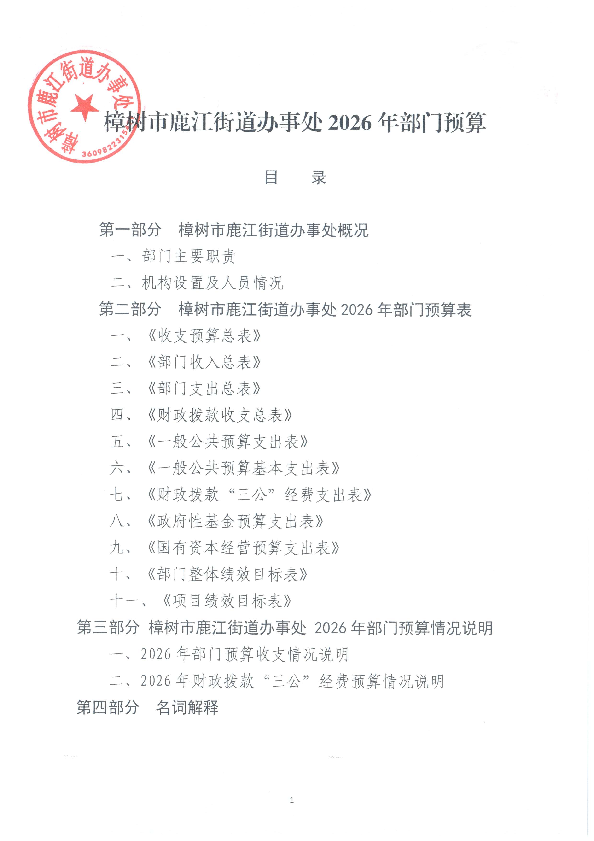 樟樹市鹿江街道辦事處2026年部門預(yù)算公開