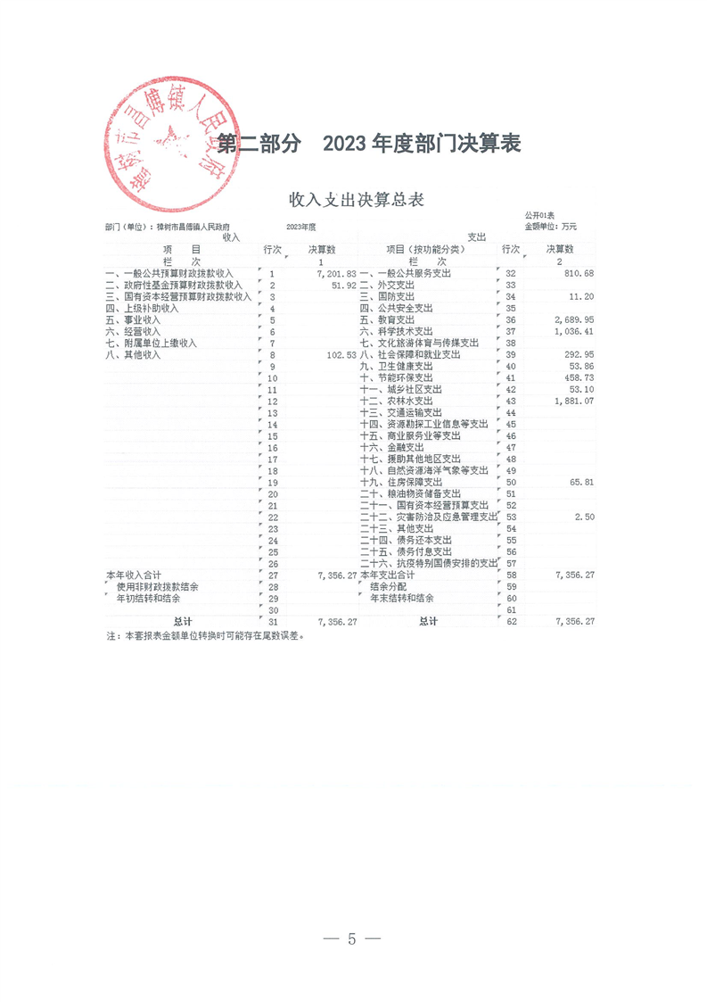 樟樹(shù)市昌傅鎮(zhèn)人民政府2023年度部門(mén)決算
