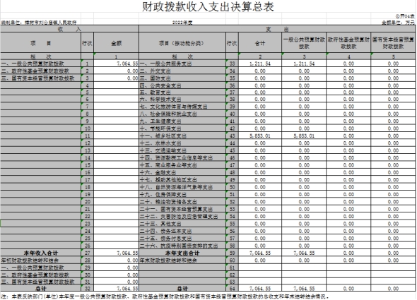 本部門2022年度支出總計 7064.55 萬元,其中本年支出合計 7064.55 萬元,較2021年增加 2853.01 萬元,增長67.7 %,主要原因是:地方支出增加;年末結轉和結余 0 萬元,較2021年增加 0 萬元,增長 0 %,主要原因是:無結轉結余。