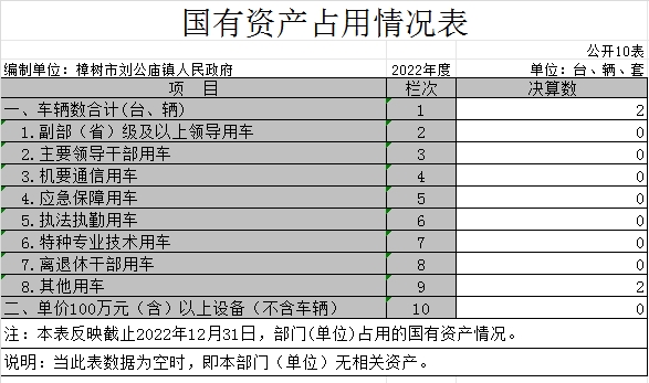 截止2022年12月31日,本部門國有資產占用情況見公開10表《國有資產占用情況表》。其中車輛中的其他用車主要是灑水車和秸稈禁燒宣傳車。