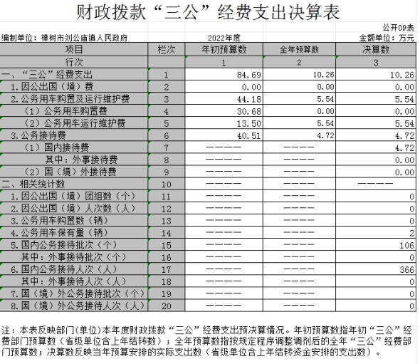 三、“三公”經費支出:指用財政撥款安排的因公出國(境)費、公務用車購置及運行維護費和公務接待費。其中,因公出國(境)費反映單位公務出國(境)的國際旅費、國外城市間交通費、住宿費、伙食費、培訓費、公雜費等支出;公務用車購置及運行維護費反映單位公務用車車輛購置支出(含車輛購置稅、牌照費),按規定保留的公務用車燃料費、維修費、過橋過路費、保險費、安全獎勵費用等支出;公務接待費反映單位按規定開支的各類公務接待(含外賓接待)支出。