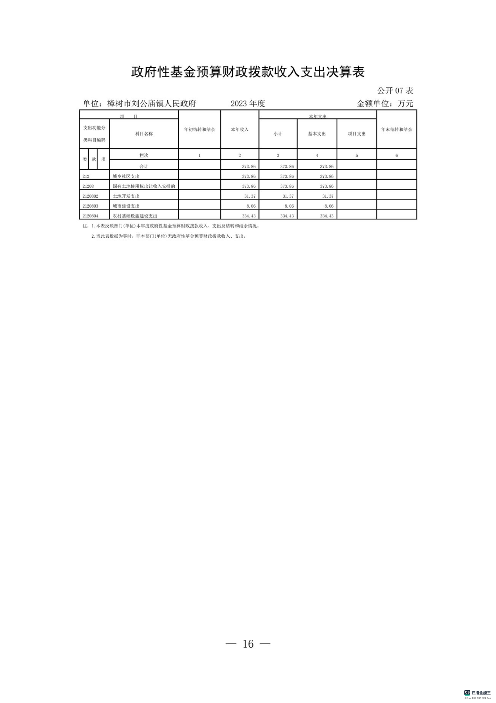 樟樹市劉公廟鎮人民政府2023年度部門決算