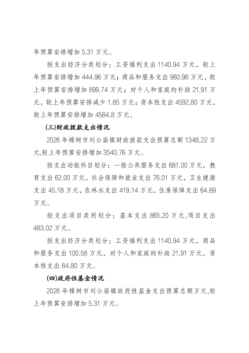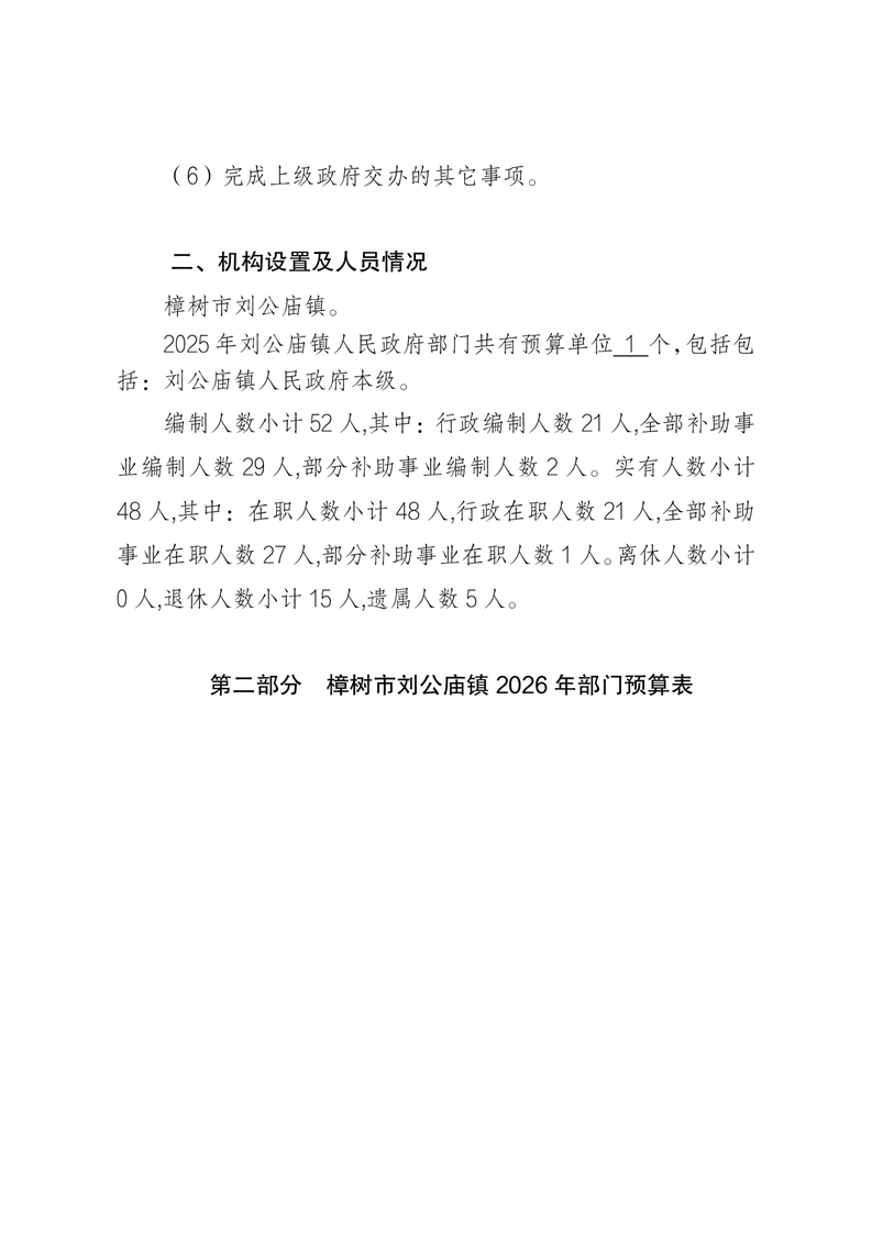 樟樹市劉公廟鎮人民政府2026年部門預算