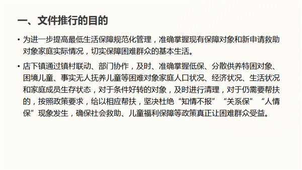 【PPT解讀】《店下鎮人民政府關于進一步加強民政救助和保障對象動態管理的通知》