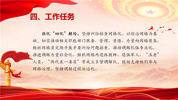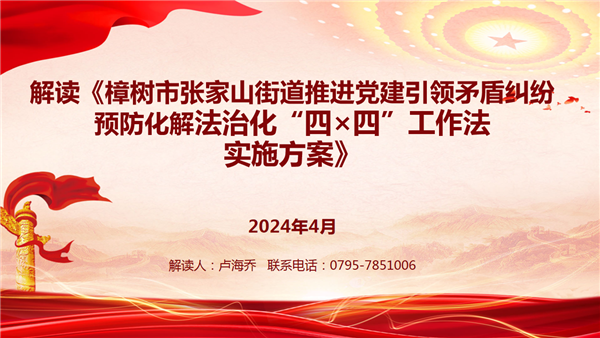 【PPT解讀】樟樹市張家山街道推進黨建引領矛盾糾紛預防化解法治化四×四工作法實施方案
