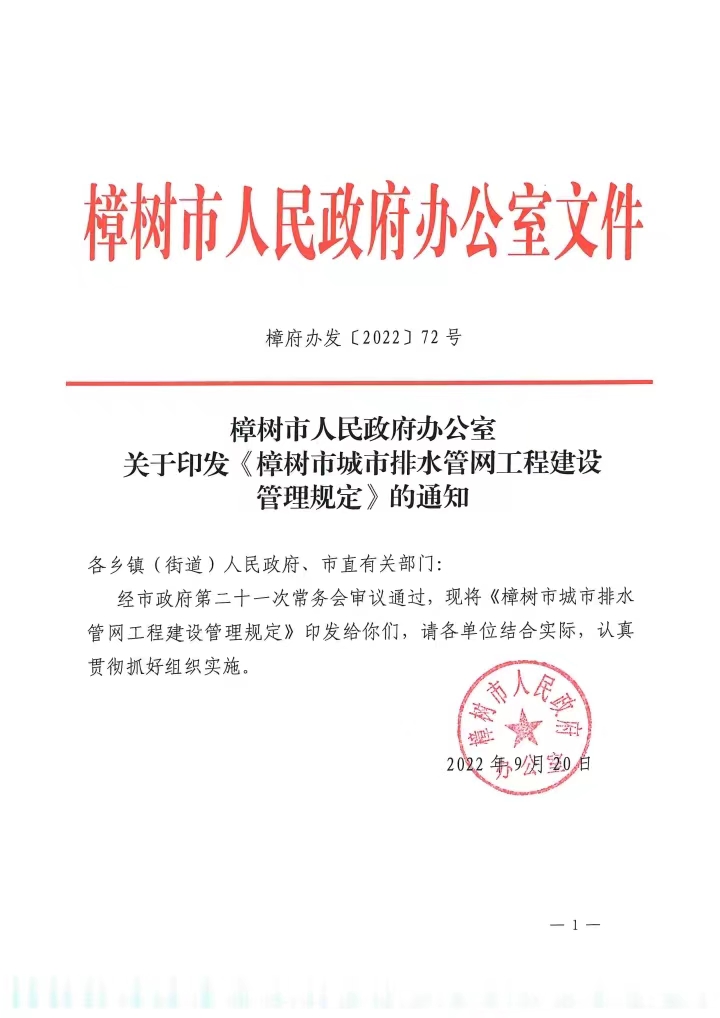 樟府辦發〔2022〕72號 樟樹市人民政府辦公室關于印發《樟樹市城市排水管網工程建設管理規定》的通知