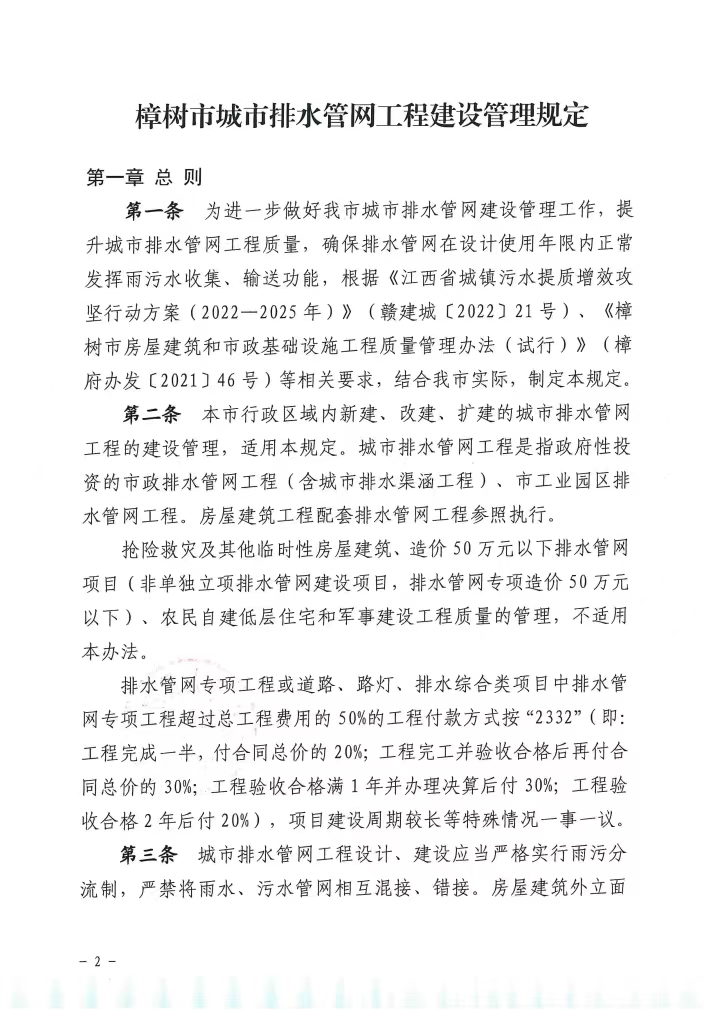 【文字解讀】解讀《樟樹市城市排水管網工程建設管理規定》