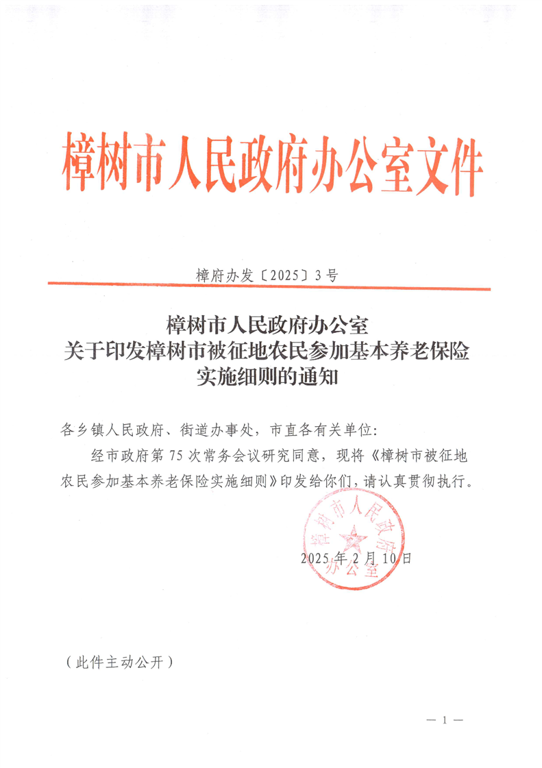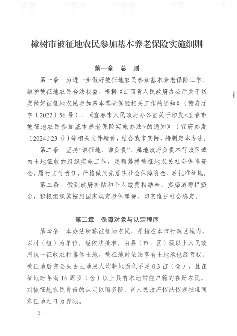 樟樹市人民政府辦公室關(guān)于印發(fā)《樟樹市被征地農(nóng)民參加基本養(yǎng)老保險實施細則》的通知