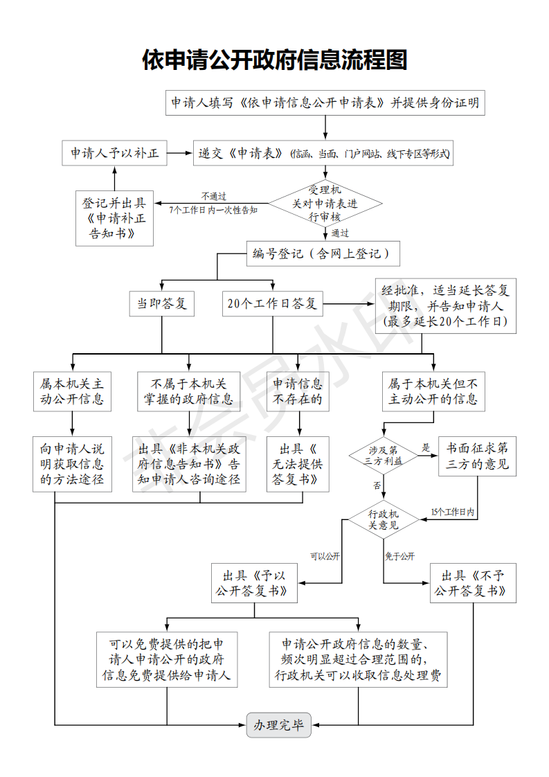 對申請人提出的政府信息公開申請,本機關將根據不同情況分別作出答復,詳見本機關處理政府信息公開申請流程圖。