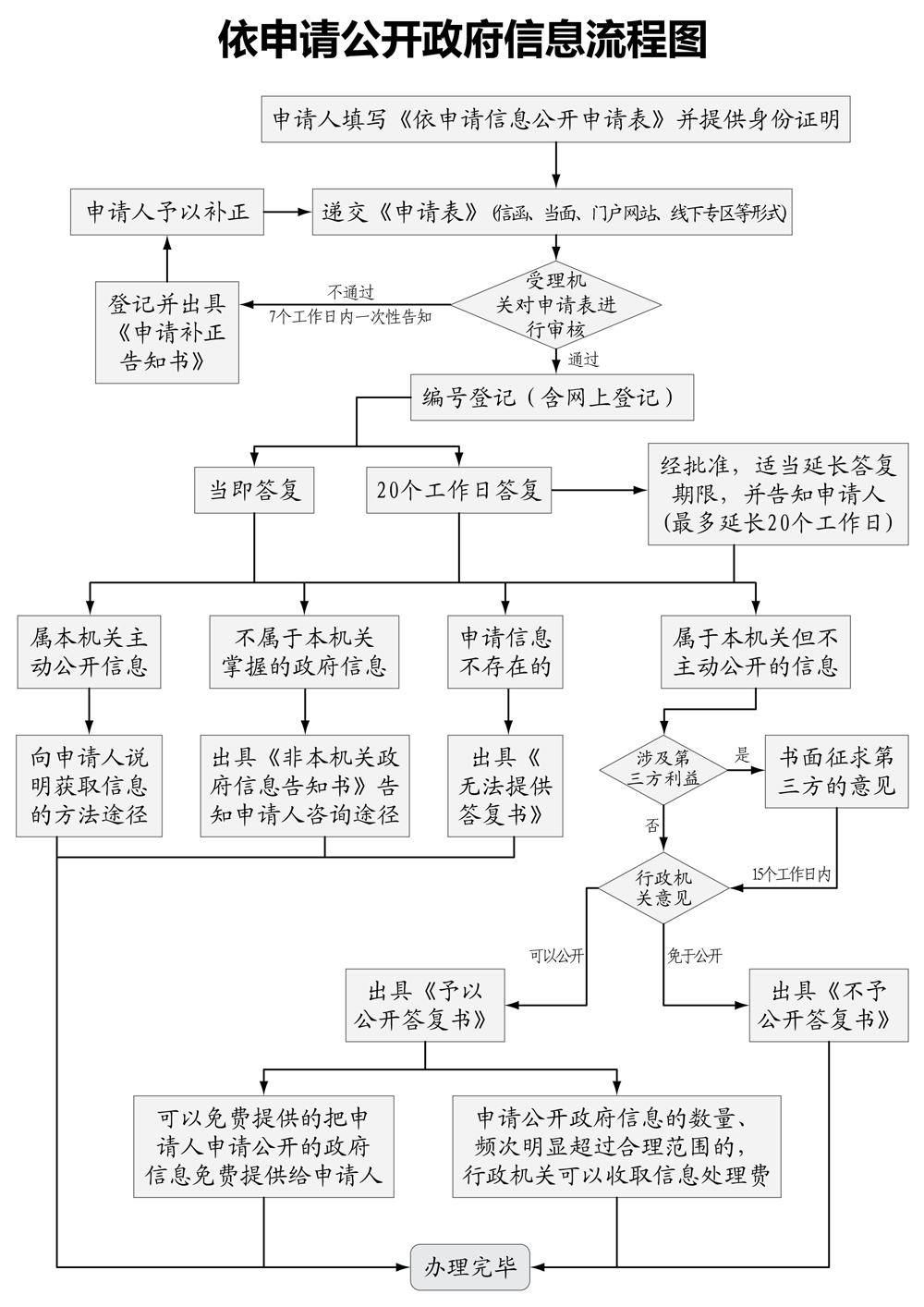 本機關收到政府信息公開申請后,按規定程序對申請進行審查,能夠當場答復的,當場予以答復;不能當場答復的,自收到申請之日起在20個工作日內予以答復;如遇特殊情況需延長答復期限的,經本機關信息公開工作機構負責人同意,并告知申請人,可延長20個工作日。
