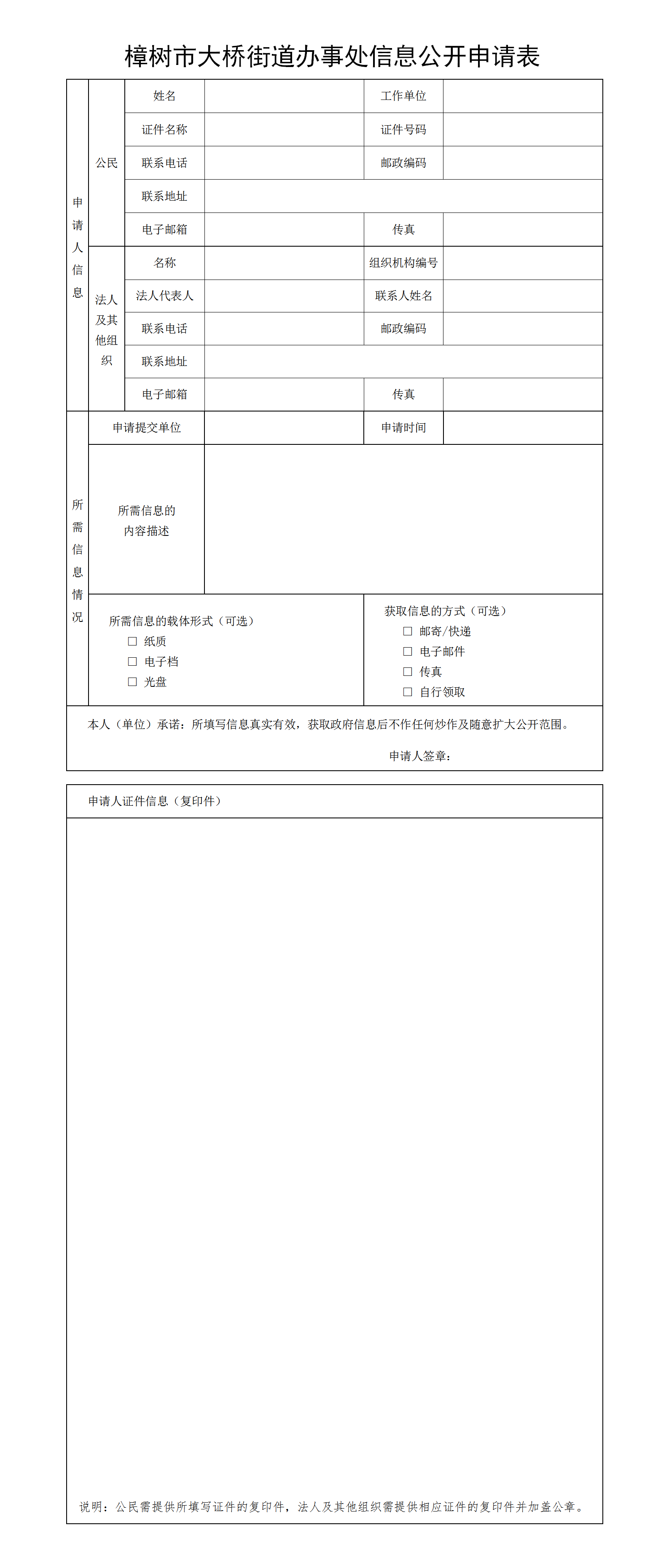 樟樹市大橋街道辦事處信息公開申請表