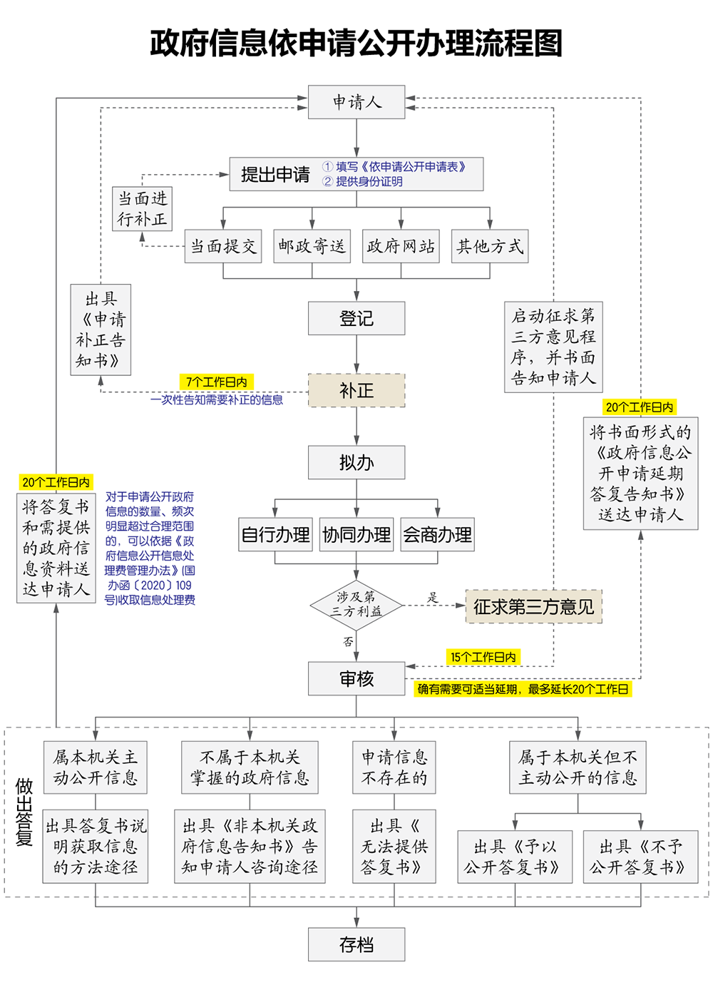?、诮值擂k事處信息公開機構不能當場提供信息的,自收到申請之日起20個工作日內(nèi)予以答復;如需延長答復期限的,應當經(jīng)政府信息公開工作機構負責人同意,并告知申請人,延長答復的期限最長不得超過20個工作日。申請公開的政府信息涉及第三方權益的,街道辦事處信息公開機構征求第三方意見所需時間不計算在本條規(guī)定的期限內(nèi)。