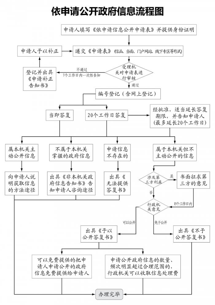 本機關收到政府信息公開申請后,按規定程序對申請進行審查,能夠當場答復的,當場予以答復;不能當場答復的,自收到申請之日起在20個工作日內予以答復;如遇特殊情況需延長答復期限的,經本機關信息公開工作機構負責人同意,并告知申請人,可延長20個工作日。