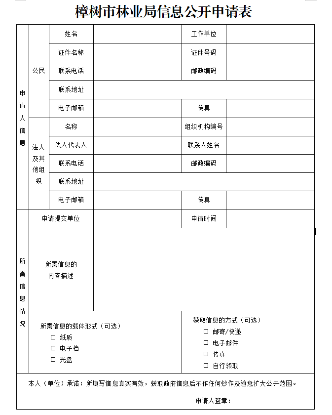 樟樹市林業局信息公開申請表