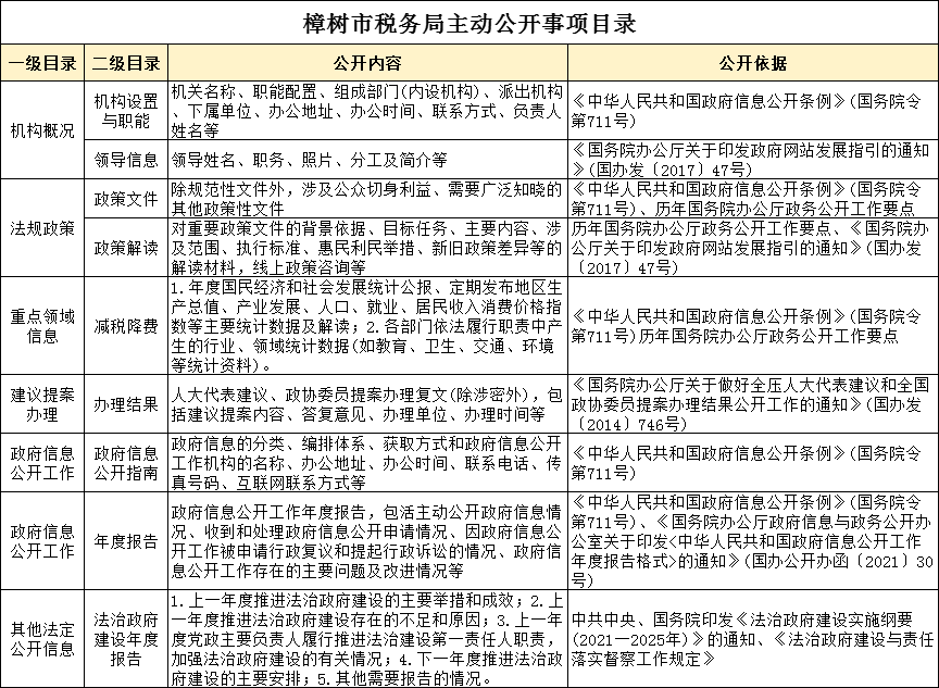 國家稅務總局樟樹市稅務局主動公開事項目錄