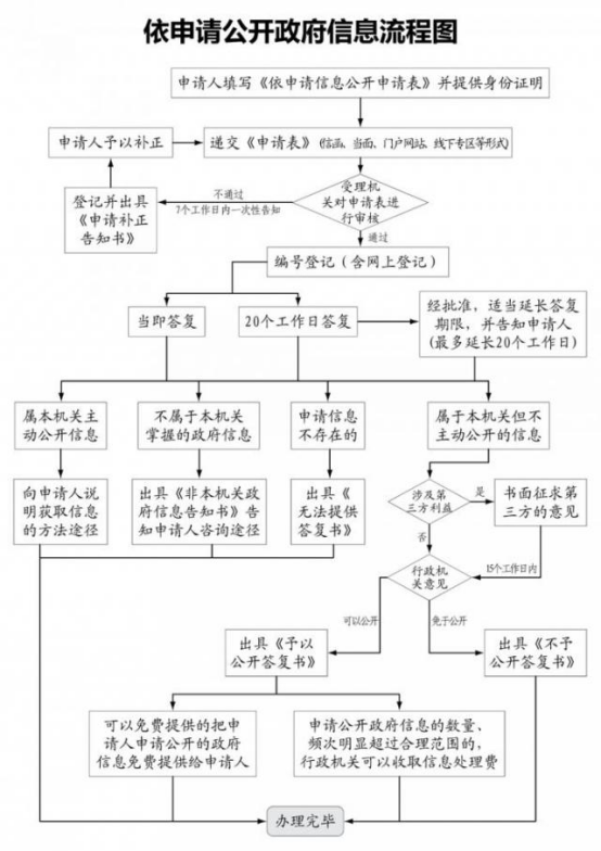 本機關收到政府信息公開申請后,按規定程序對申請進行審查,能夠當場答復的,當場予以答復;不能當場答復的,自收到申請之日起在20個工作日內予以答復;如遇特殊情況需延長答復期限的,經本機關信息公開工作機構負責人同意,并告知申請人,可延長20個工作日。