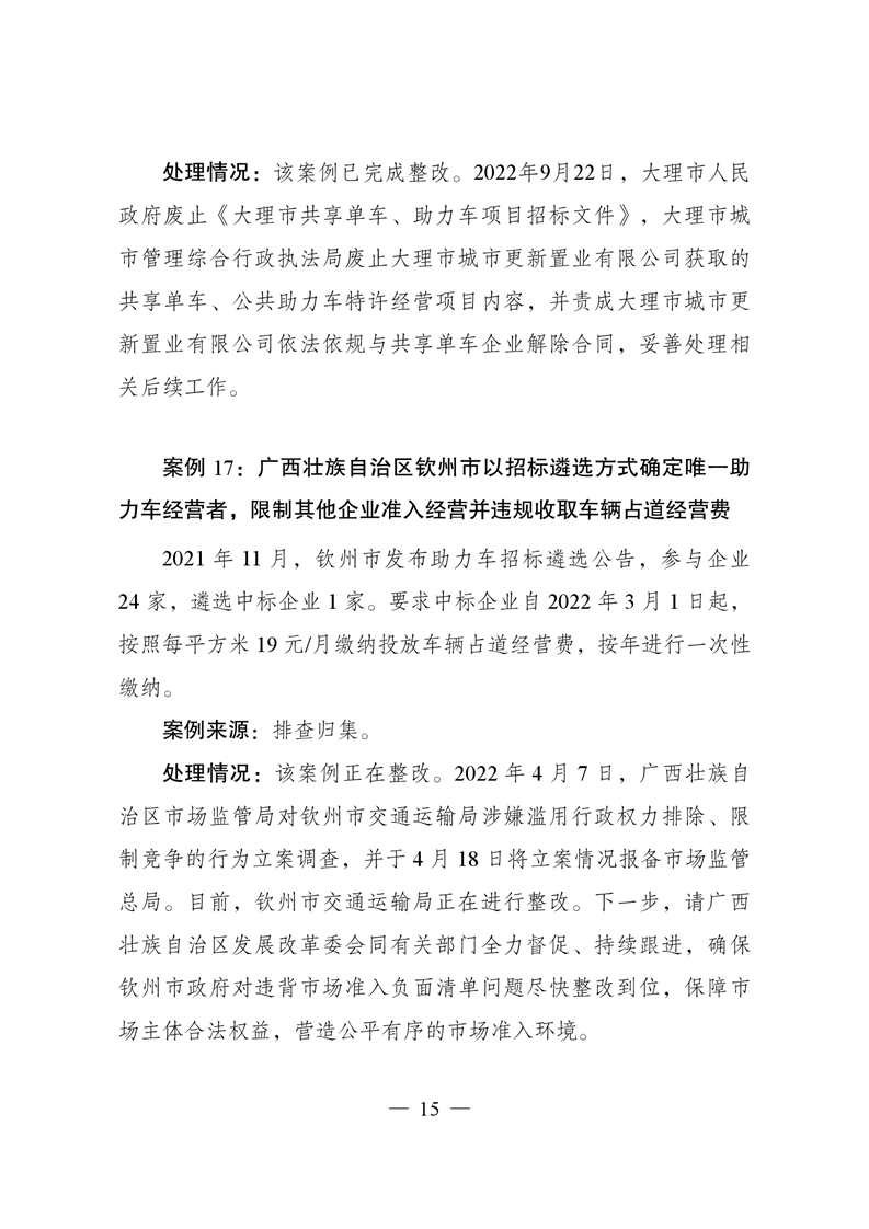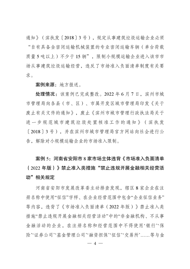 違背市場準入負面清單典型案例及處理情況通報(第4期)