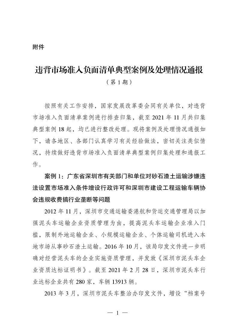 違背市場準(zhǔn)入負(fù)面清單典型案例及處理情況通報(第1期)