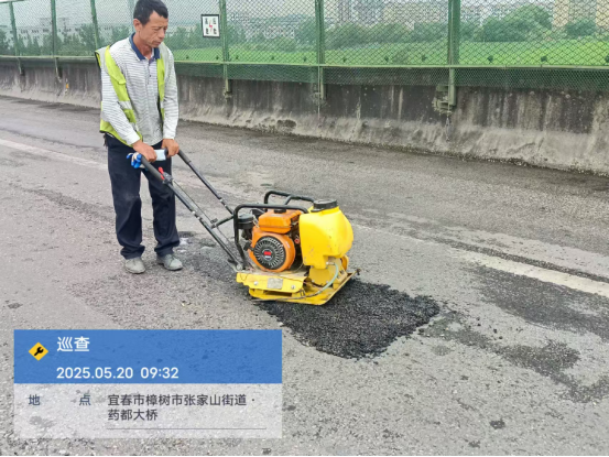 二是持續深入排查整改,消除安全隱患。近期,該中心干部職工在橋梁巡查過程中,發現藥都大橋機非隔離護欄多處受損,影響通行,安排人員立即更換;在薛溪互通立交段,橋面出現坑洞,聯系市政公司立即修復;在四特大道鐵路道口, 安排人員對設備進行維修保養。