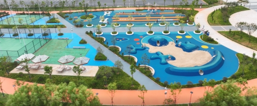 項目建設內容充分考慮了全年齡段市民的需求,主要包括:建設6個乒乓球臺、5個羽毛球場、2個排球場、1個網球場等標準體育設施;配備55套休閑桌椅、10套成人健身器材、17套兒童娛樂設施;安裝108套園路燈、36套球場燈保障夜間照明,并布設21個監控探頭確保游園安全。同時,約1公里長的彩色瀝青跑道將各個功能區有機串聯。