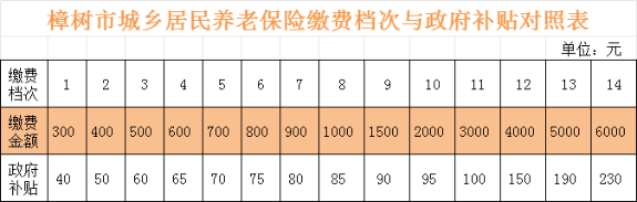 按照現行政策,城鄉居民基本養老保險個人繳費標準為每人每年300元、400元、500元、600元、700元、800元、900元、1000元、1500元、2000元、3000元、4000元、5000元、6000元14個檔次,參保對象可自主選擇繳費檔次,政府根據不同繳費標準給予參保對象相應財政補貼,繳費補貼與個人繳費一并計入個人賬戶,多繳多得,長繳多得。
