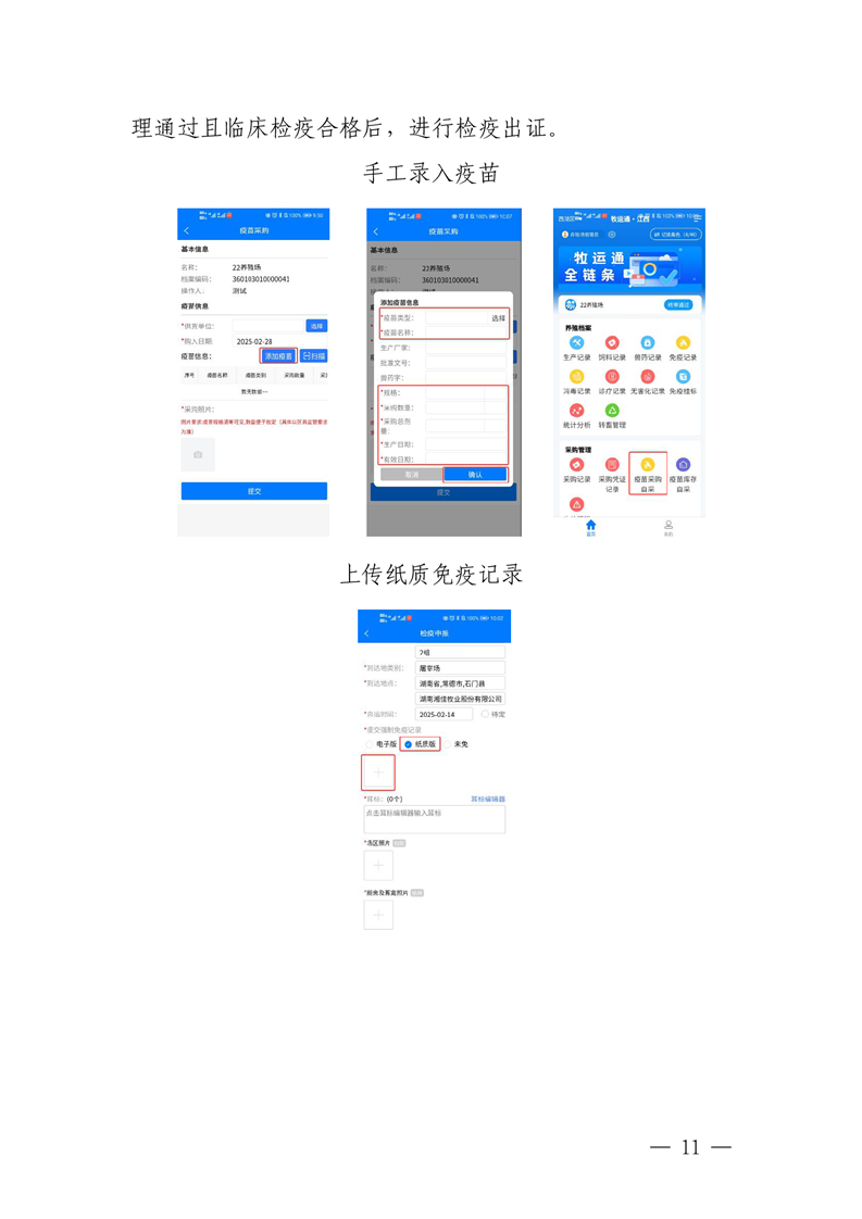 為進一步規范先打后補與社會化服務組織工作,“牧運通·江西”APP 將更新養殖端與社會化服務組織獸用疫苗錄入管理,系統升級后將關閉手工新增動 物疫苗入庫功能,所有的疫苗都需要掃描獸藥二維碼入庫,詳細情況請參閱附件1或咨詢當地鄉鎮、街道獸醫站工作人員。