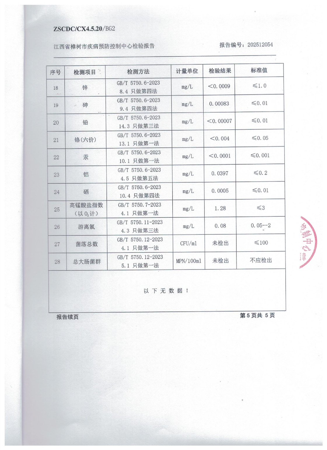 樟樹市供水有限公司2025年第二季度末梢水檢驗報告