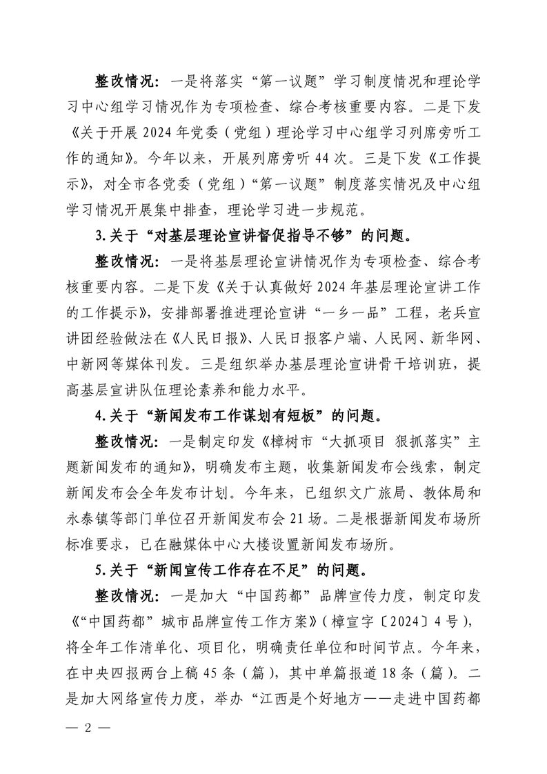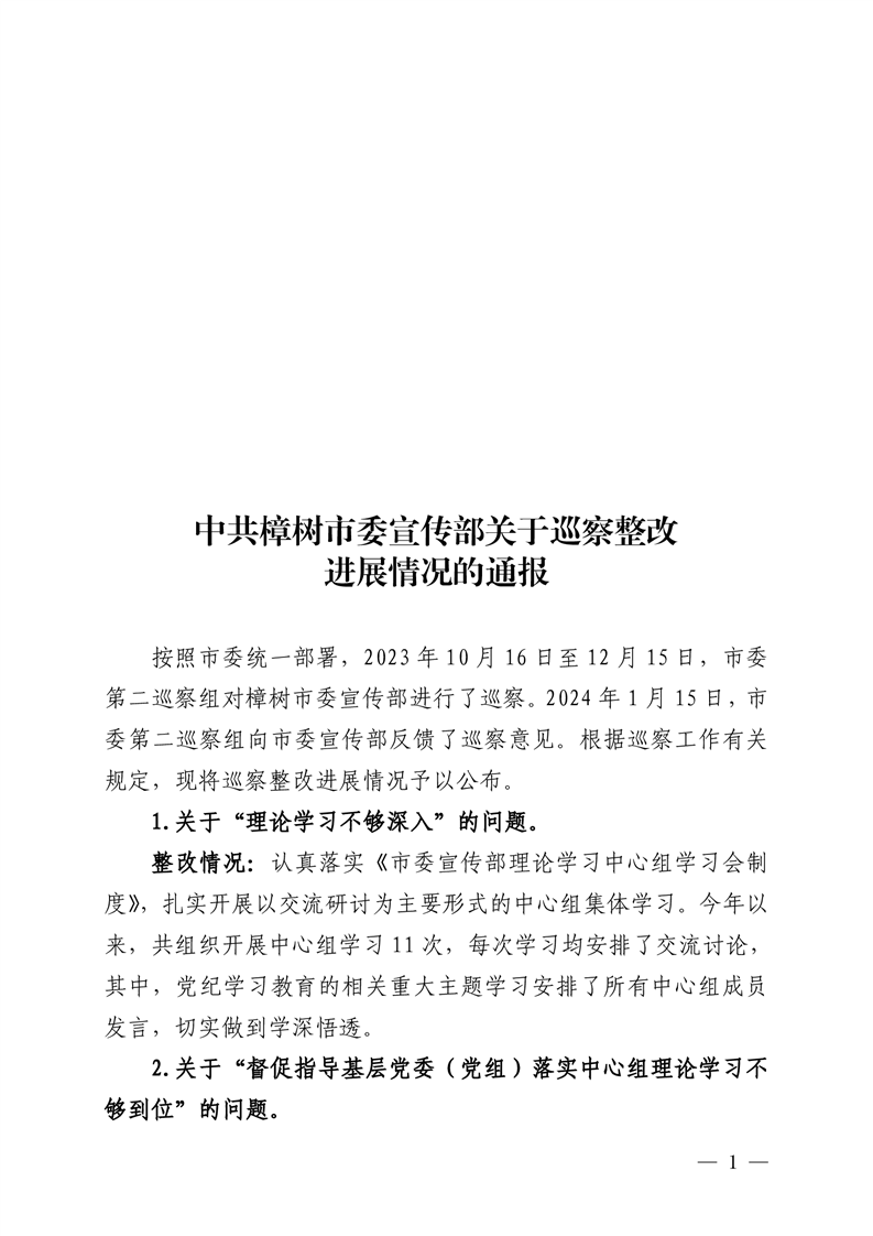 中共樟樹市委宣傳部關(guān)于巡察整改進展情況的通報