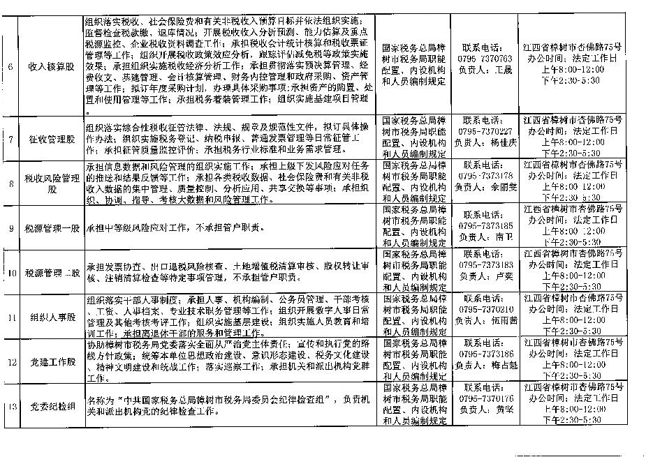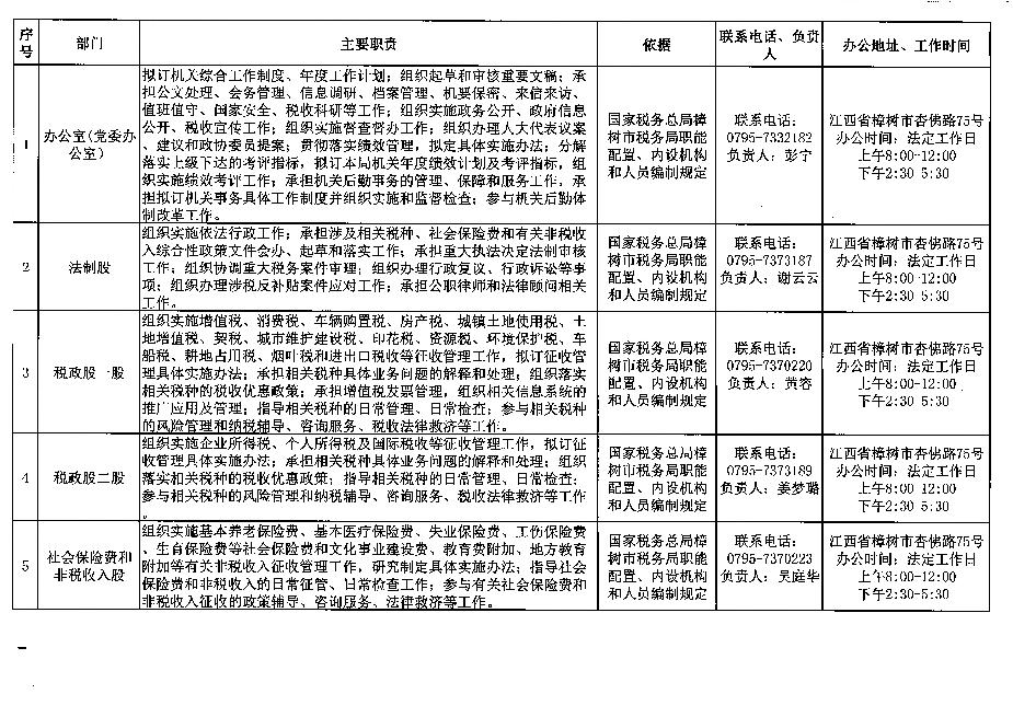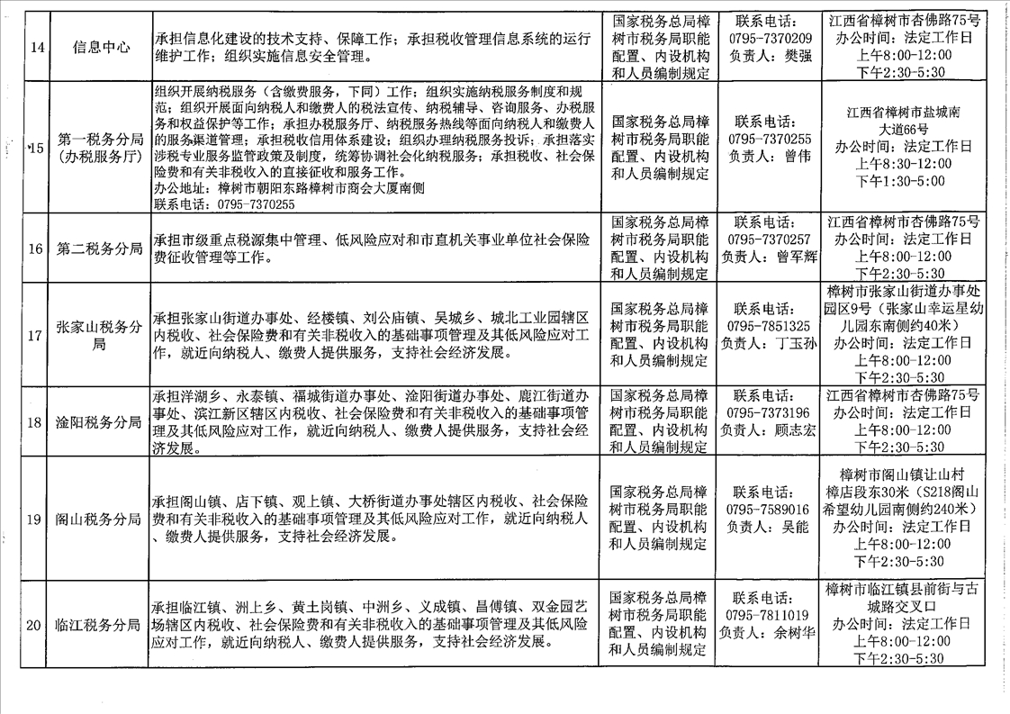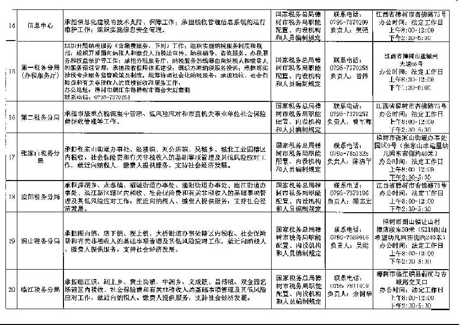 國家稅務總局樟樹市稅務局內設機構和辦公地址、辦公時間、聯系方式及負責人信息