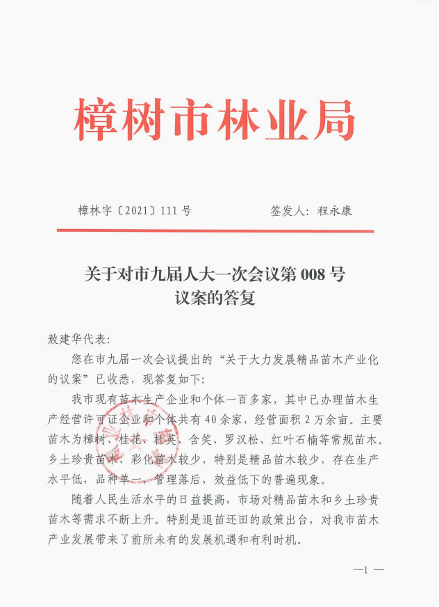 樟樹市林業局關于對市九屆人大一次會議第008號議案的答復