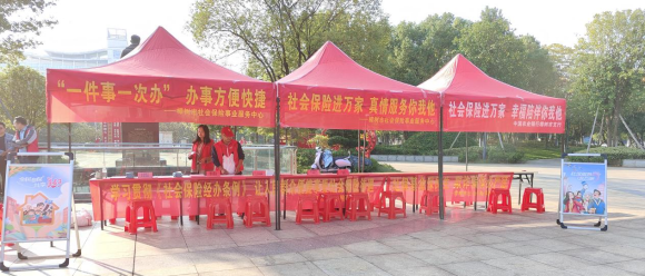 為全面學習宣傳貫徹黨的二十大精神和習近平總書記關于社會保障工作系列重要論述, 推進《社會保險經辦條例》落地實施, 深化行風建設,提升服務水平,營造全民了解、宣傳、參加社會保險的良好氛圍。10月21日上午,樟樹市社會保險事業服務中心聯合中國農業銀行樟樹市支行在福城公園舉辦“社保服務進萬家”宣傳活動。