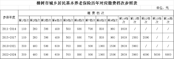 備注:2011-2014年,農(nóng)村居民共有5個繳費檔次,最高繳費檔次為500元;城鎮(zhèn)居民共有10個繳費檔次,最高繳費檔次為1000元。