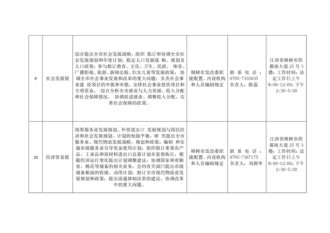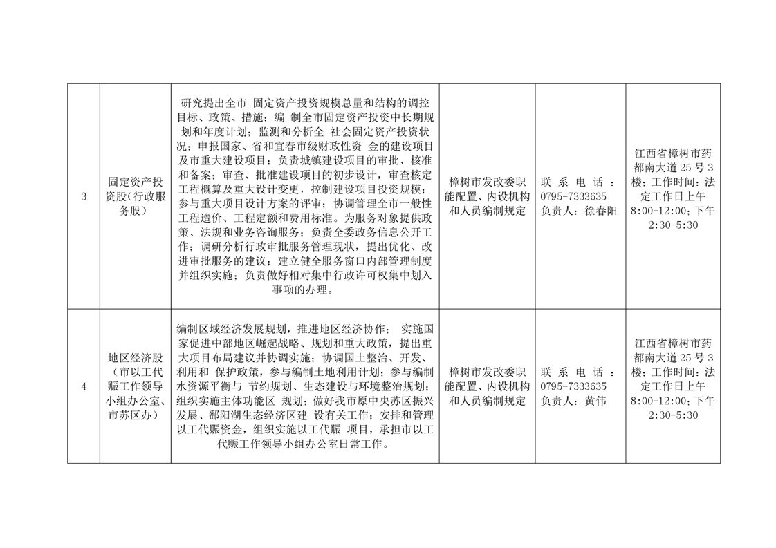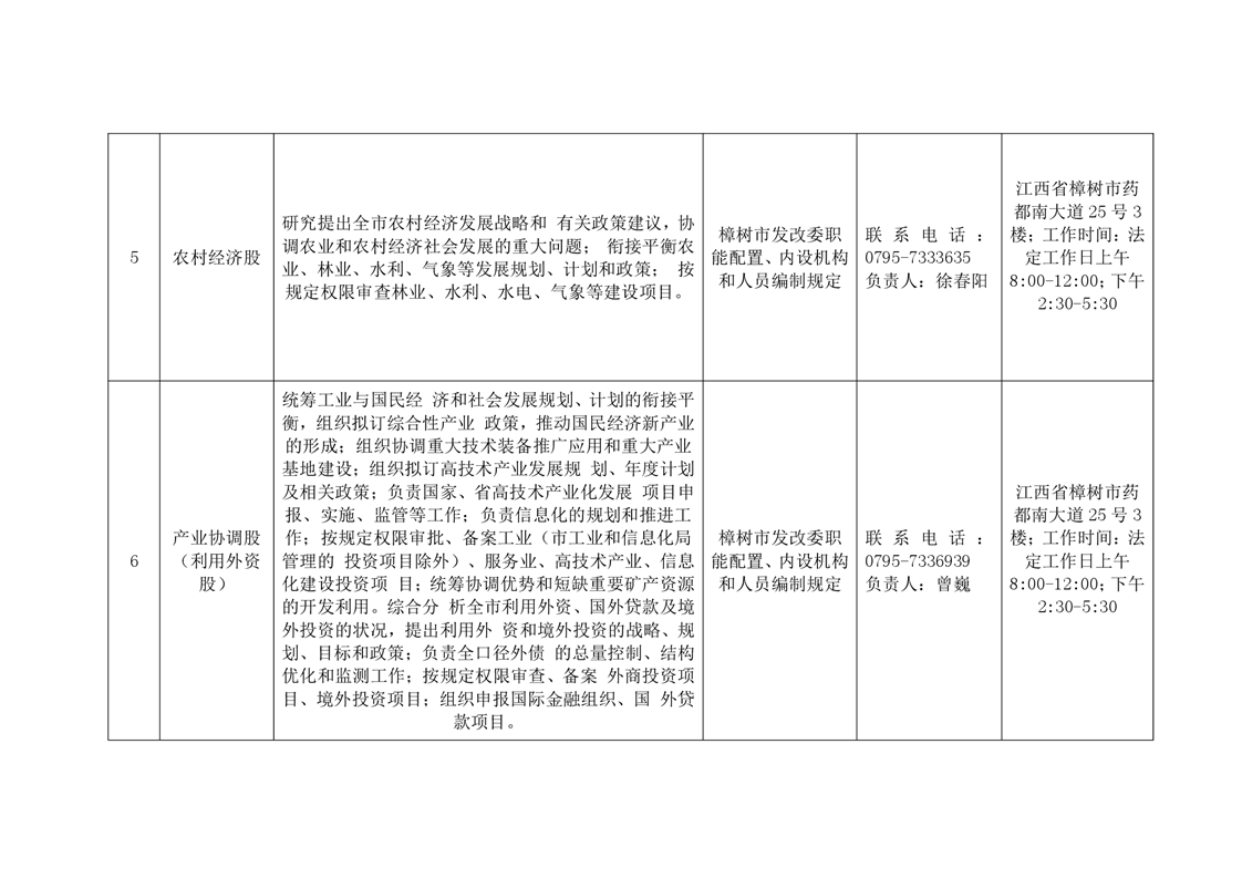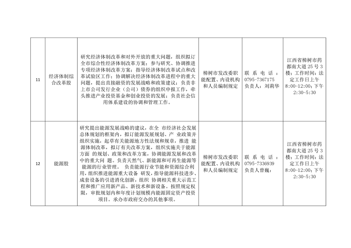 樟樹市發(fā)改委內(nèi)設(shè)機構(gòu)和辦公地址辦公時間聯(lián)系方式及股室負(fù)責(zé)人信息