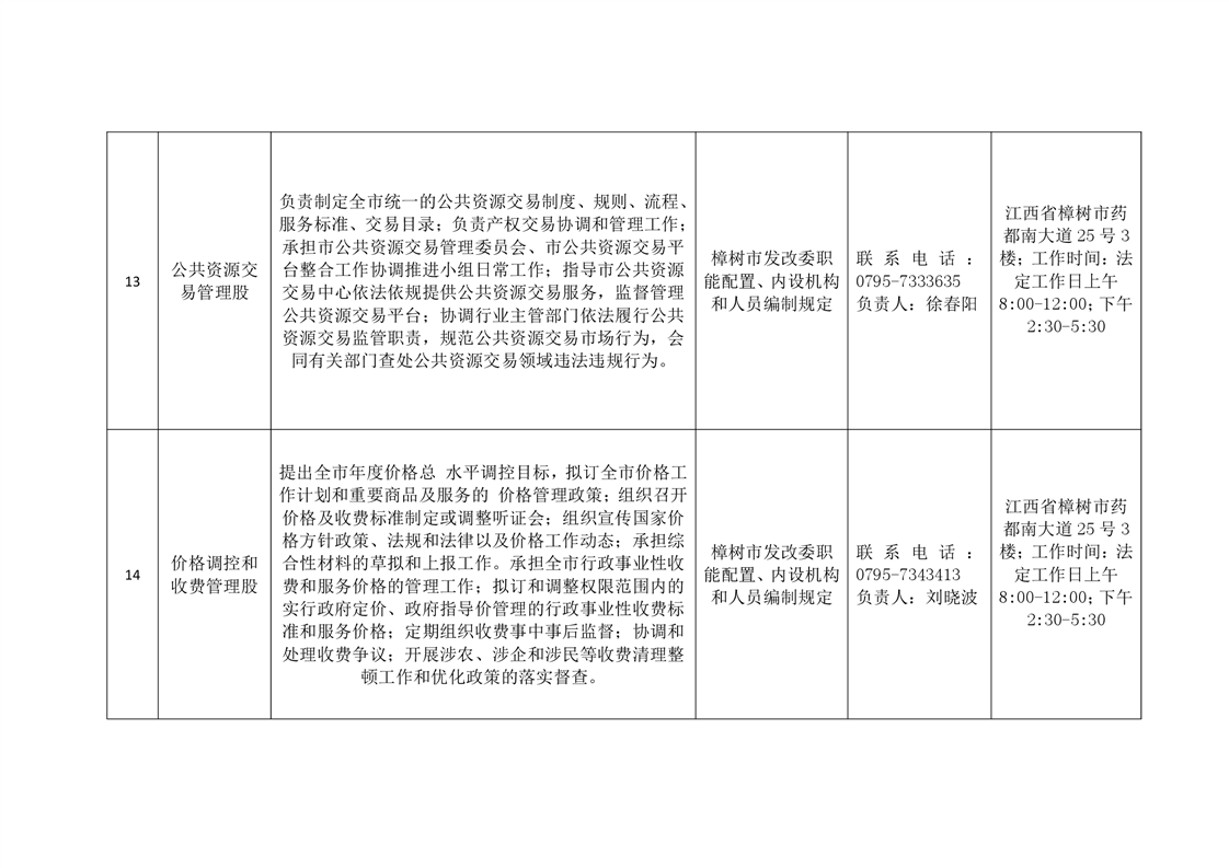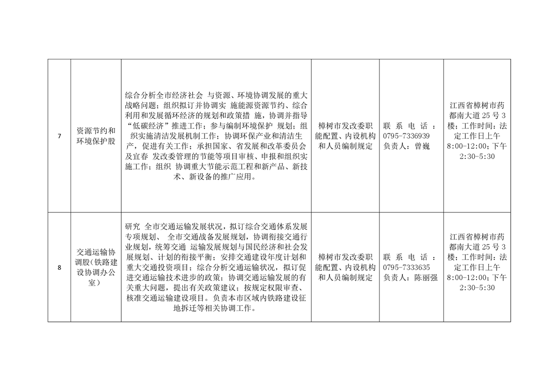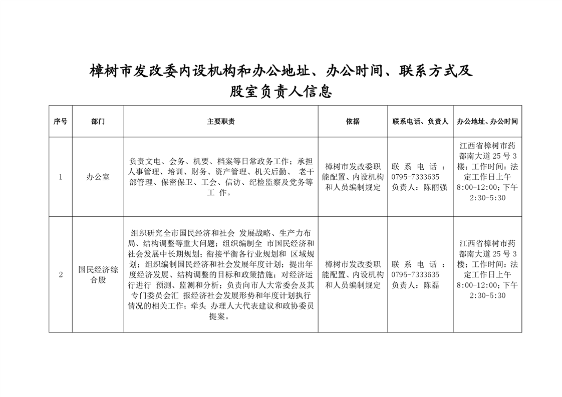 樟樹市發(fā)改委內(nèi)設(shè)機構(gòu)和辦公地址辦公時間聯(lián)系方式及股室負(fù)責(zé)人信息.pdf