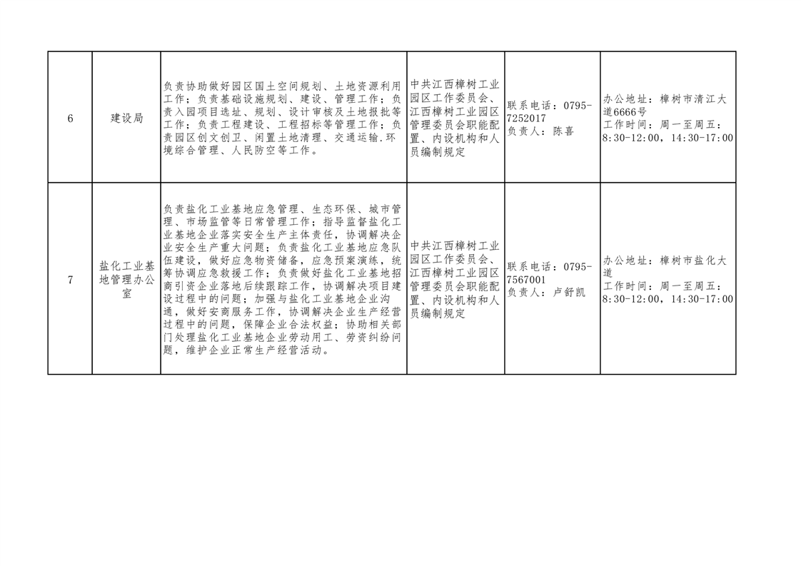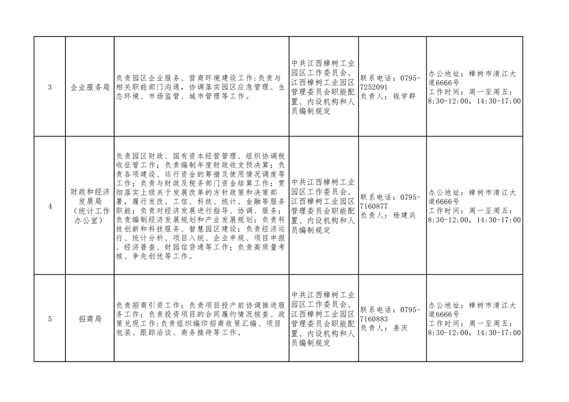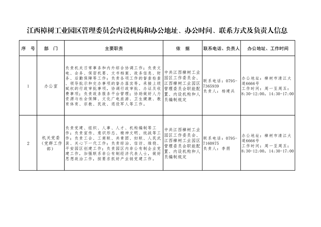 江西樟樹工業(yè)園區(qū)管理委員會(huì)內(nèi)設(shè)機(jī)構(gòu)和辦公地址、辦公時(shí)間、聯(lián)系方式及負(fù)責(zé)人信息