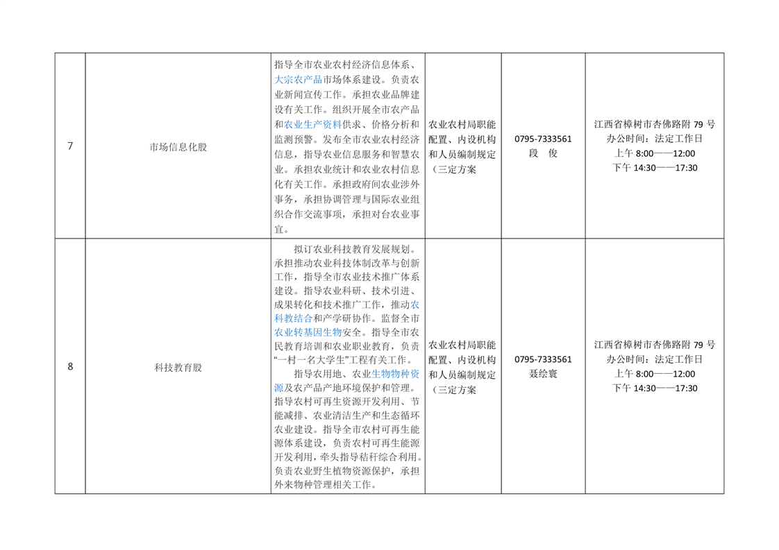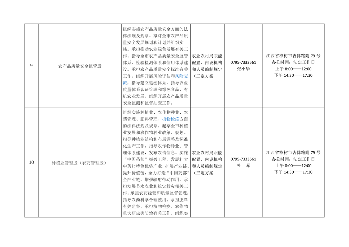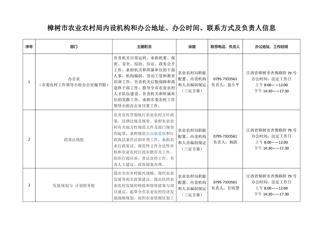 樟樹市農(nóng)業(yè)農(nóng)村局內(nèi)設機構(gòu)和辦公地址、辦公時間、聯(lián)系方式及負責人信息